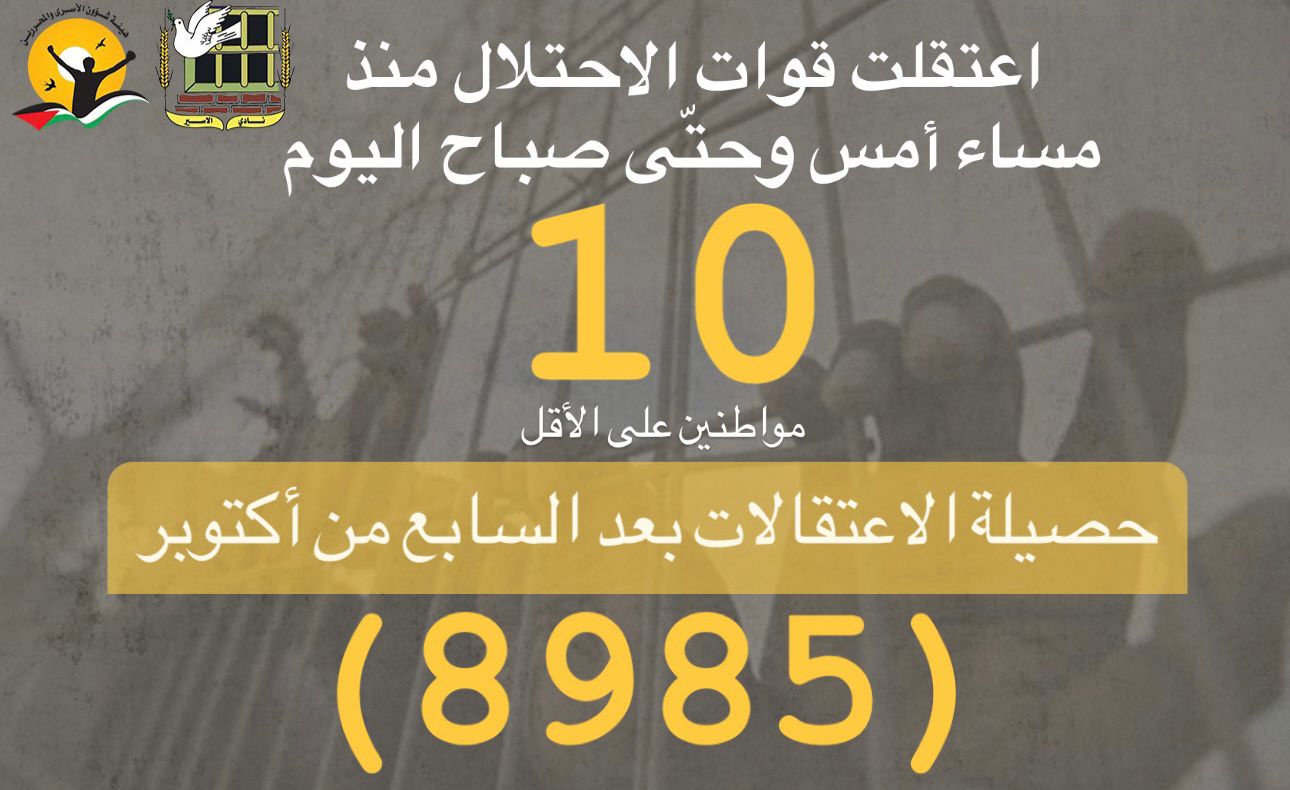 📌 بلغت حصيلة عمليات الاعتقال في الضّفة بعد السابع من أكتوبر أكثر من (9000) حالة