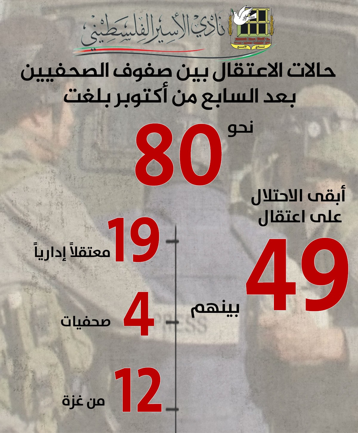 🔴 (80) حالة اعتقال سُجلت بين صفوف الصحفيين منذ بدء حرب الإبادة أبقى الاحتلال على اعتقال (49) منهم