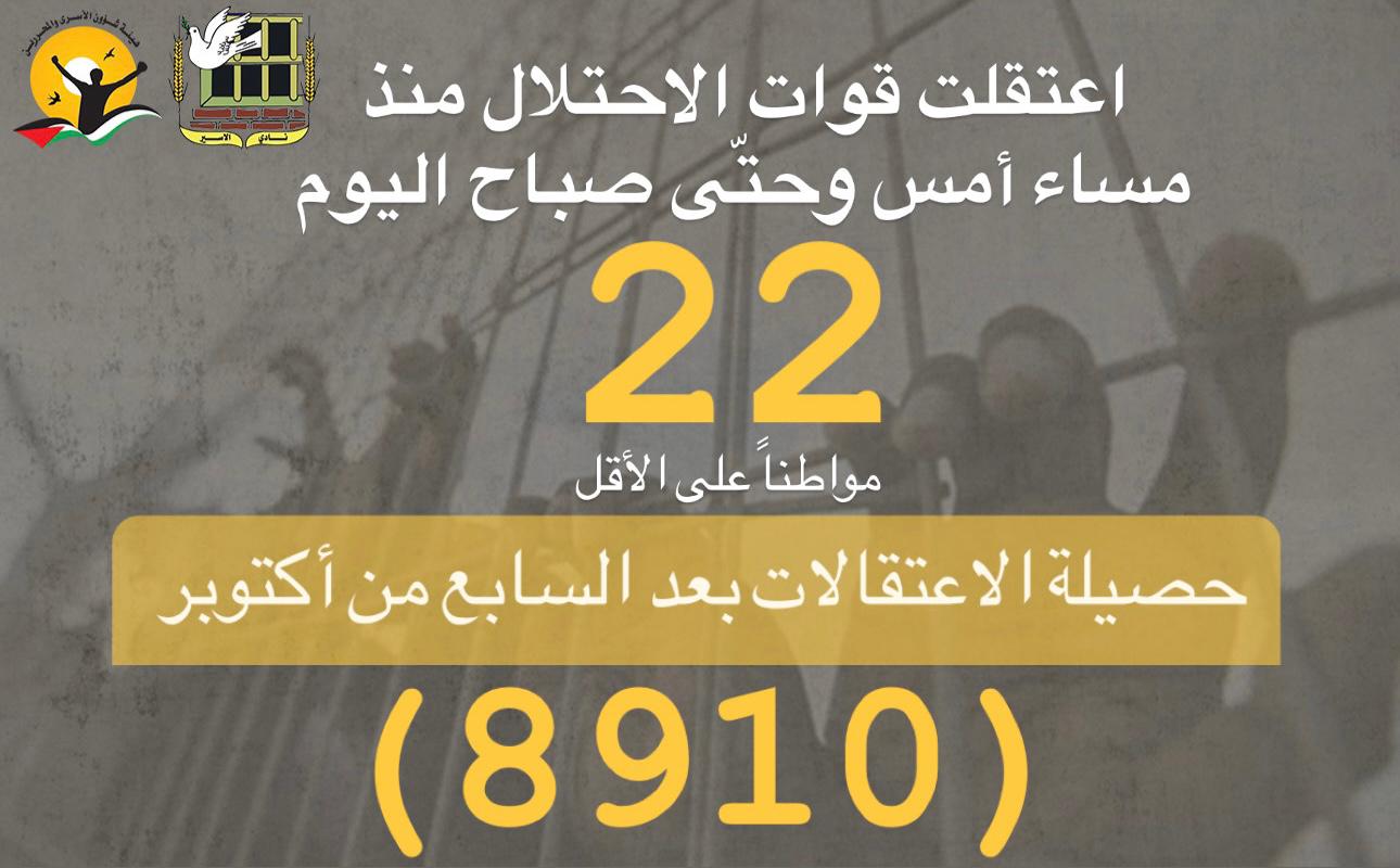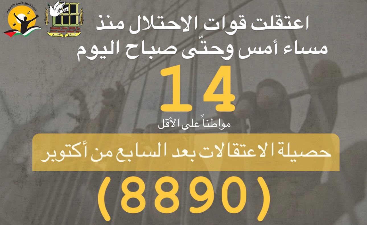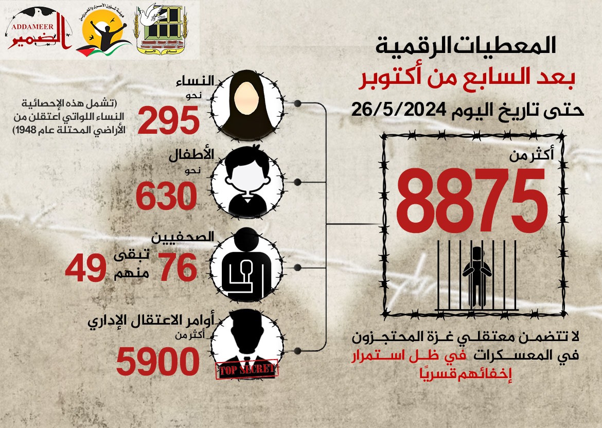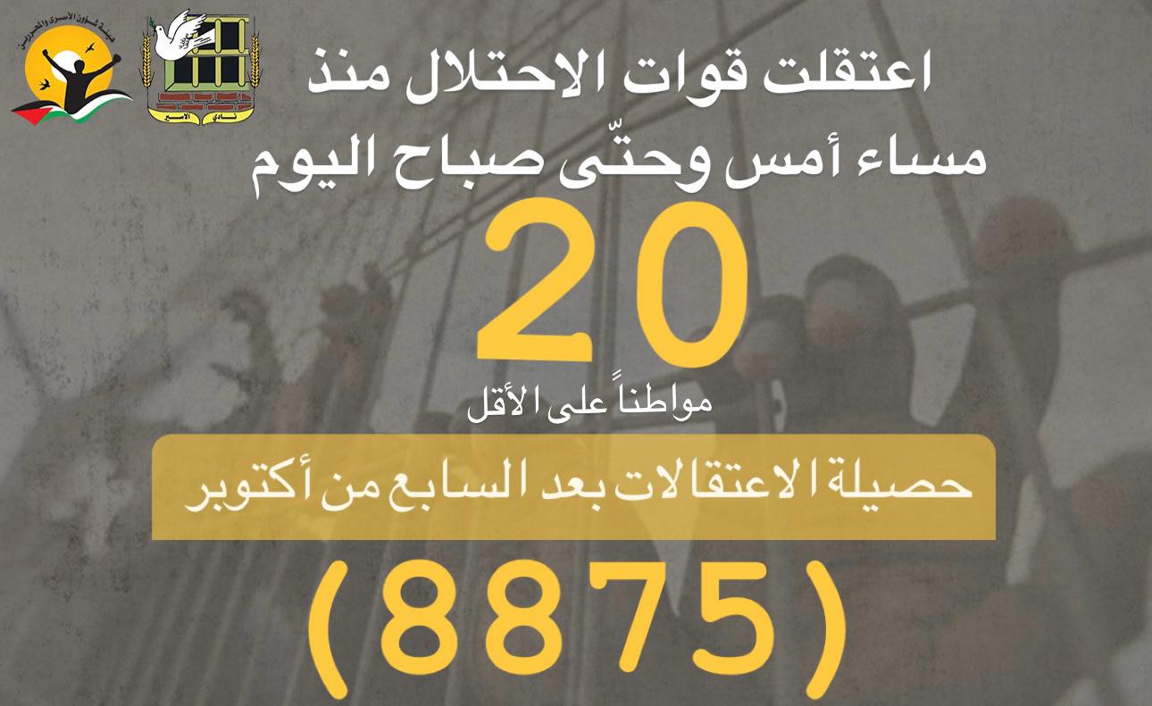 🔴 بلغت حصيلة حالات الاعتقال في الضفة بما فيها القدس ما لا يقل عن (8875)
