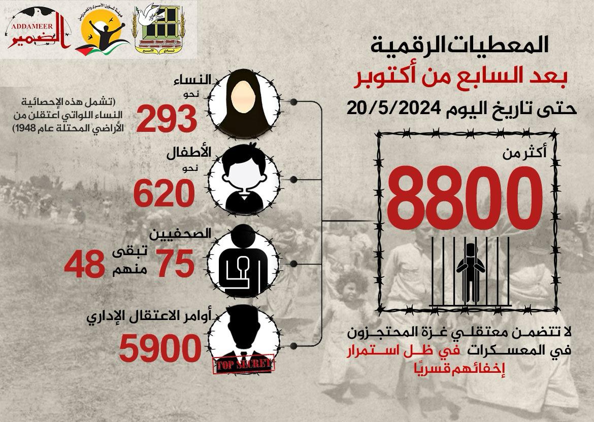 🔴 ملخص معطيات حملات الاعتقال بعد السابع من أكتوبر حتى تاريخ اليوم