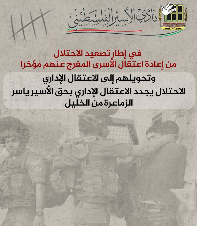🔴 في إطار تصعيد الاحتلال من إعادة اعتقال الأسرى المفرج عنهم مؤخرا وتحويلهم إلى الاعتقال الإداري