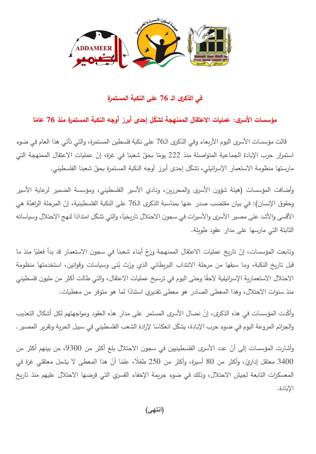 🔴 On the 76th memorial of the constant Palestinian “Nakba” catastrophe