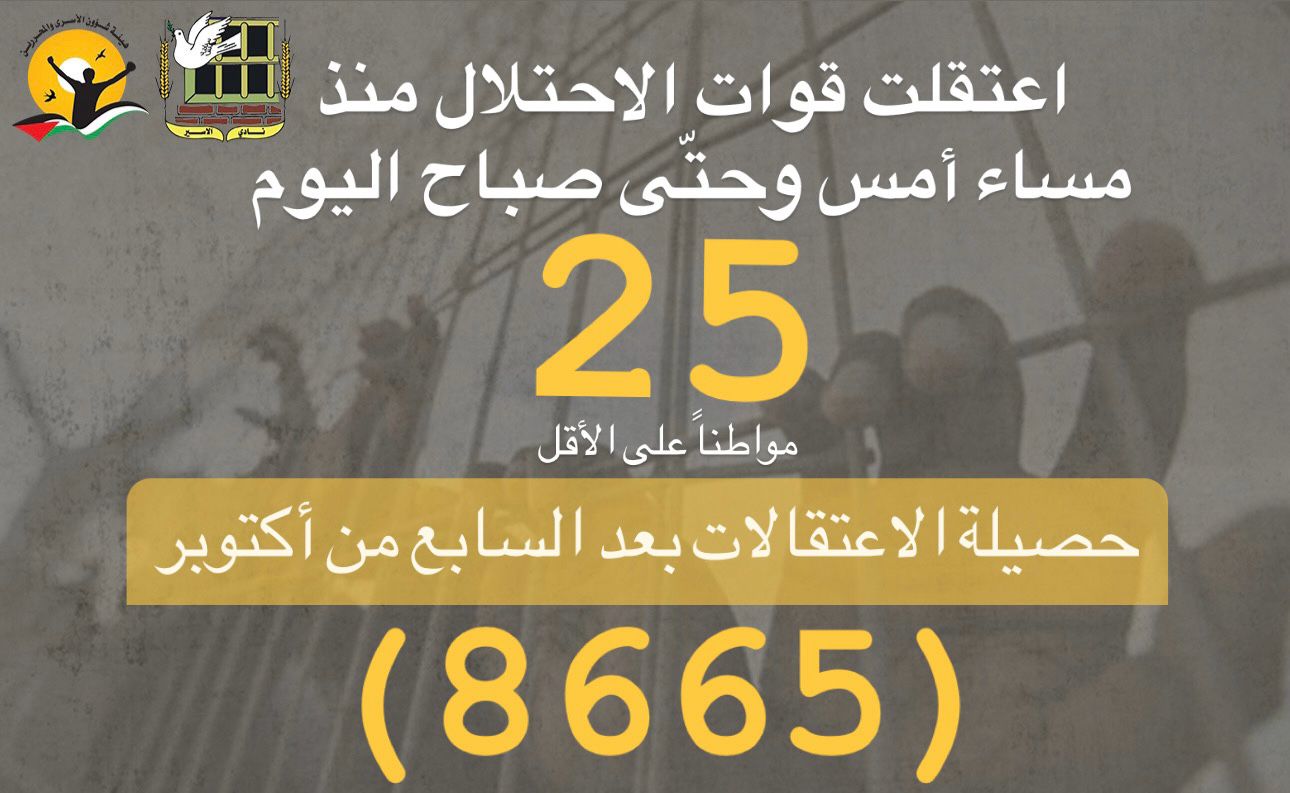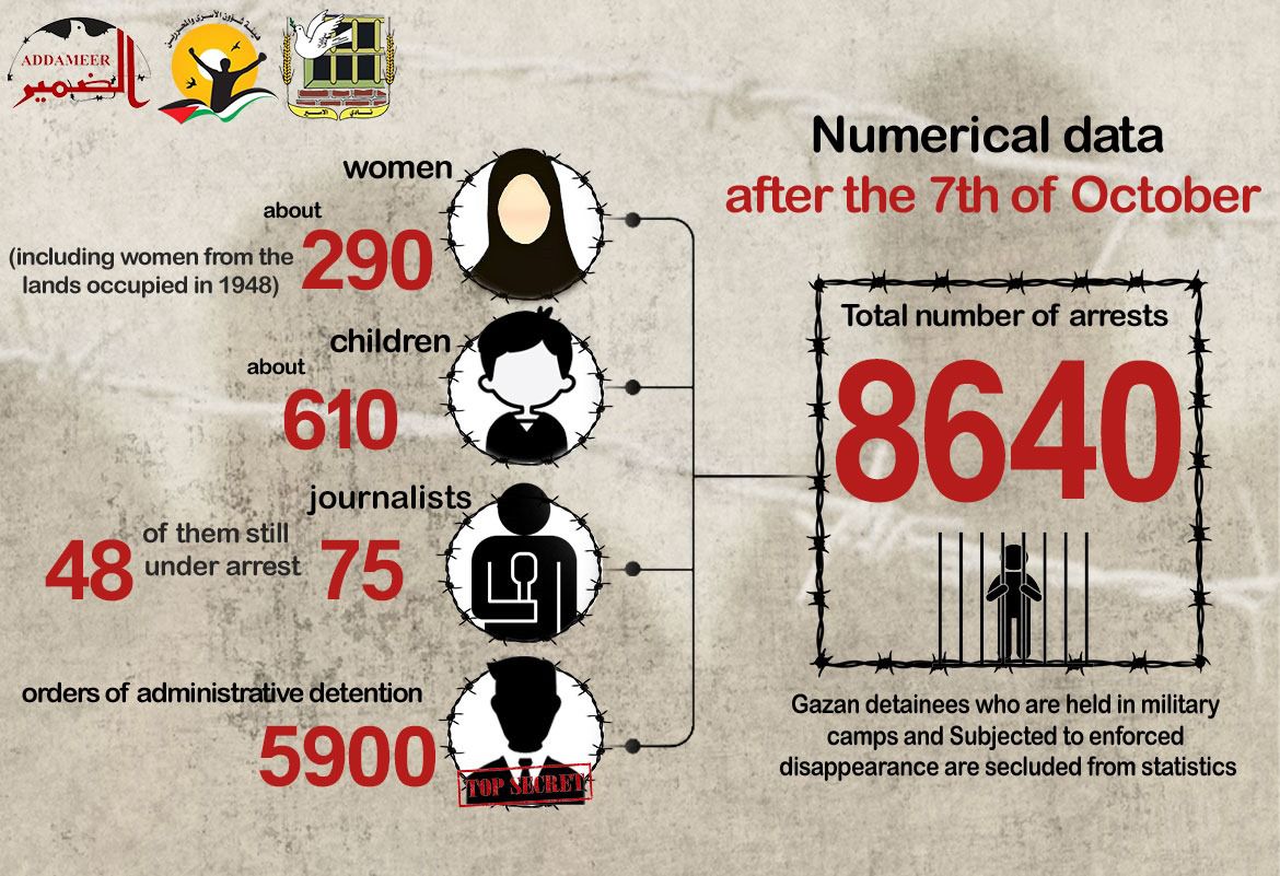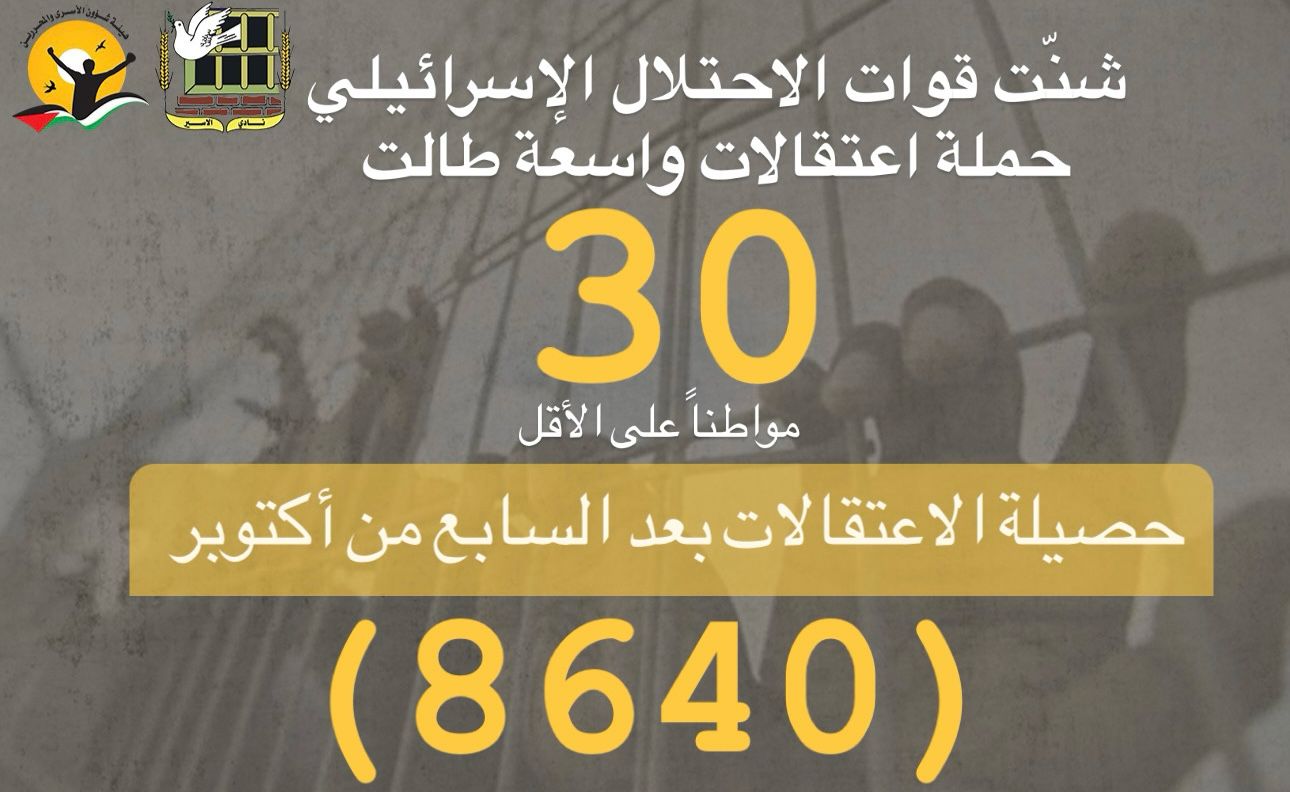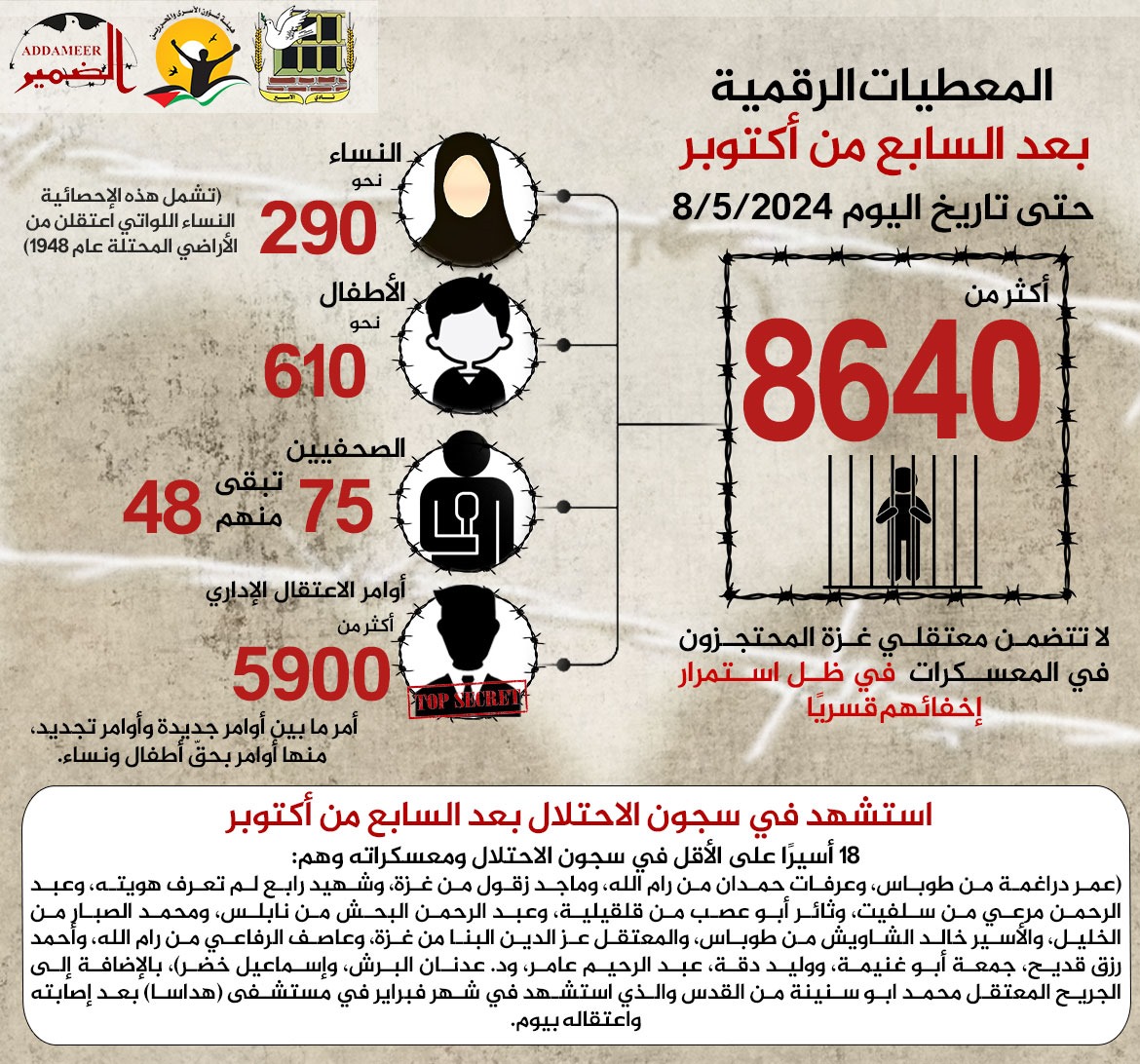 🔴 ملخص معطيات حملات الاعتقال بعد السابع من أكتوبر حتى تاريخ اليوم 8/5/2024