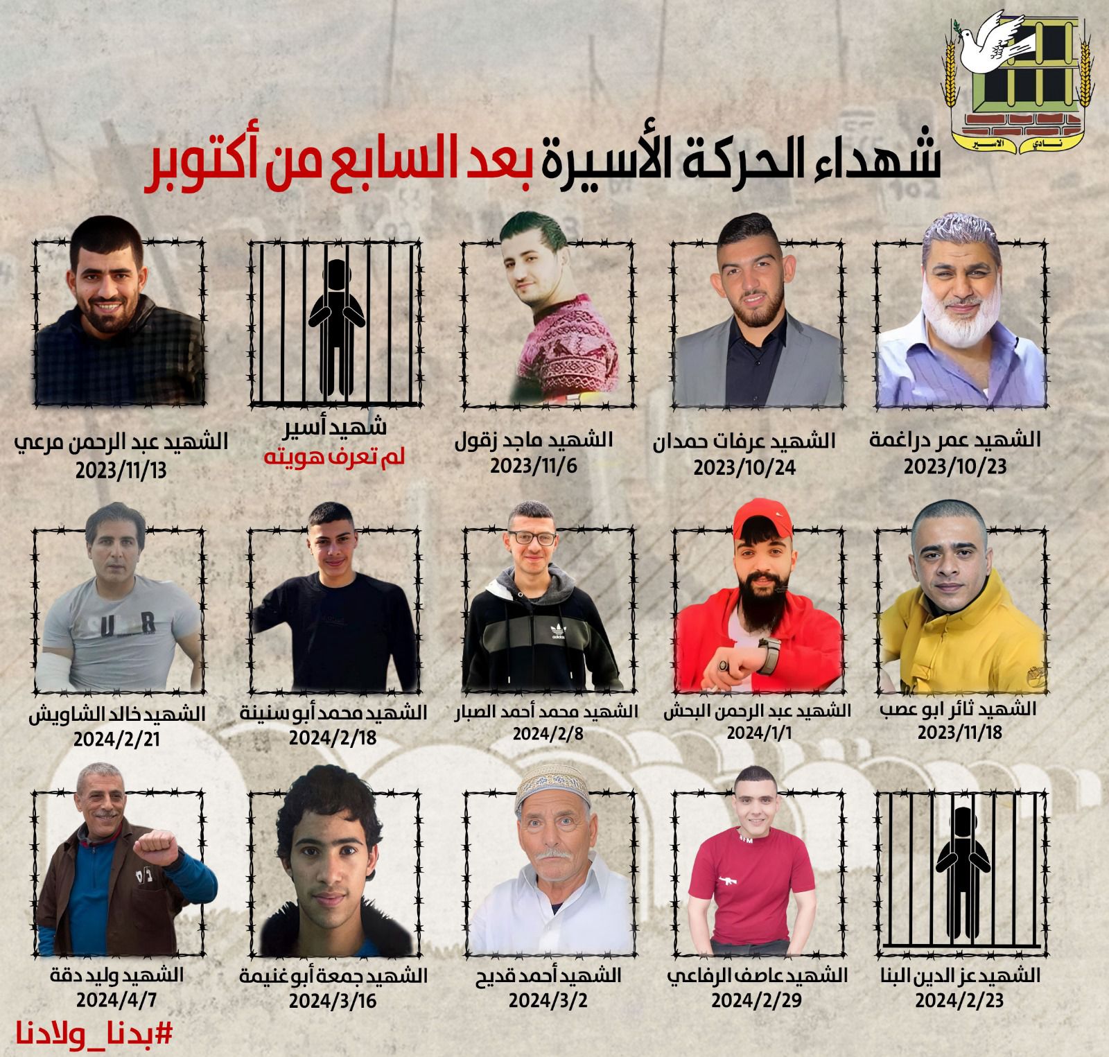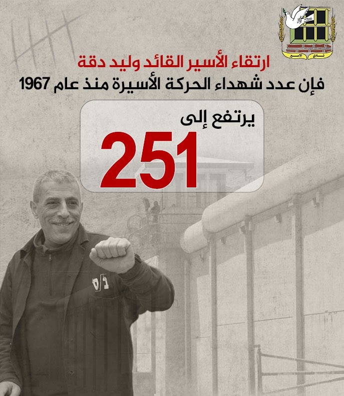 🔴 بارتقاء الأسير القائد وليد دقة فإن عدد شهداء الحركة الأسيرة منذ عام 1967 يرتفع إلى 251