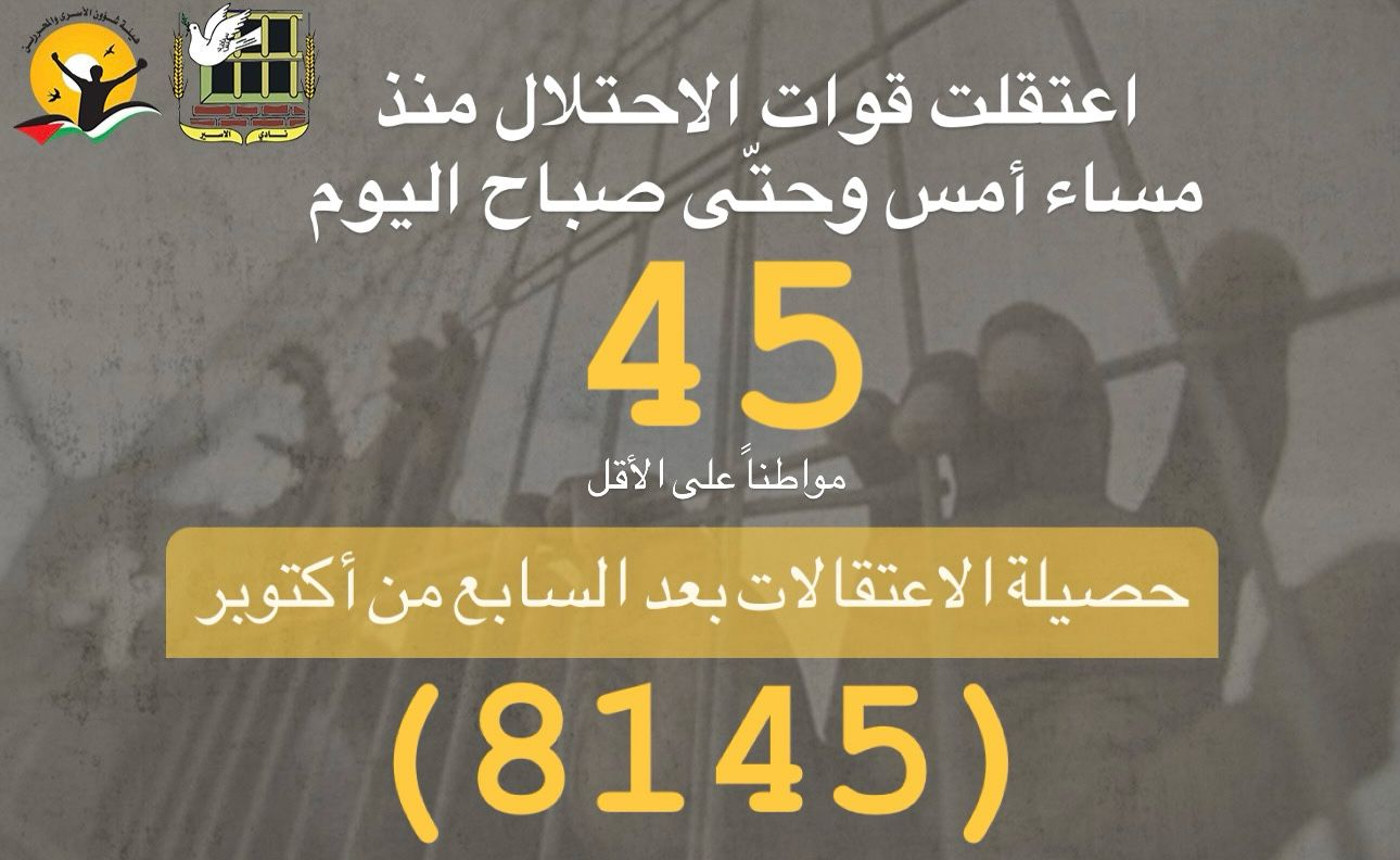 📌 ملخص حملة الاعتقالات التي نفذها الاحتلال لليوم 8/4/2024