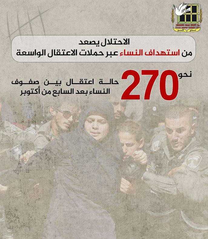 📌 نحو 270 حالة اعتقال بين صفوف النساء بعد السابع من أكتوبر