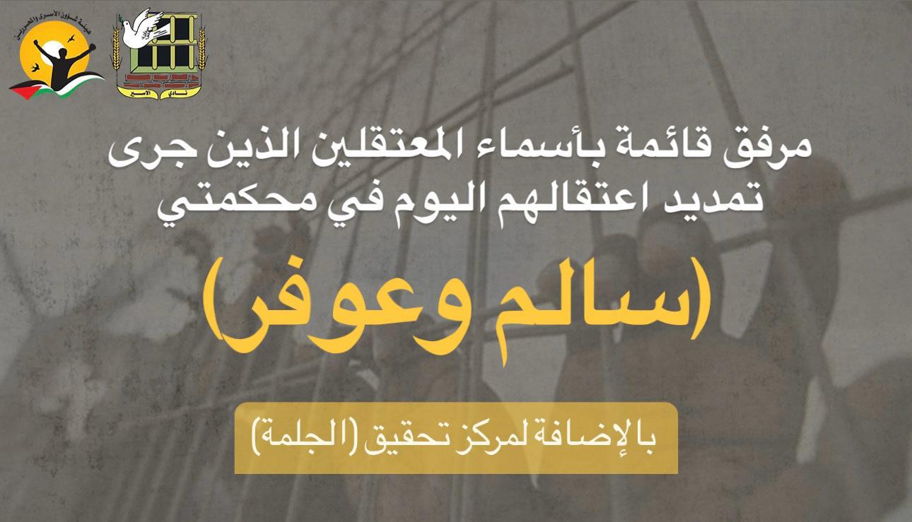 📌 معتقلين جرى تمدد اعتقالهم اليوم في محكمتي (سالم، عوفر)