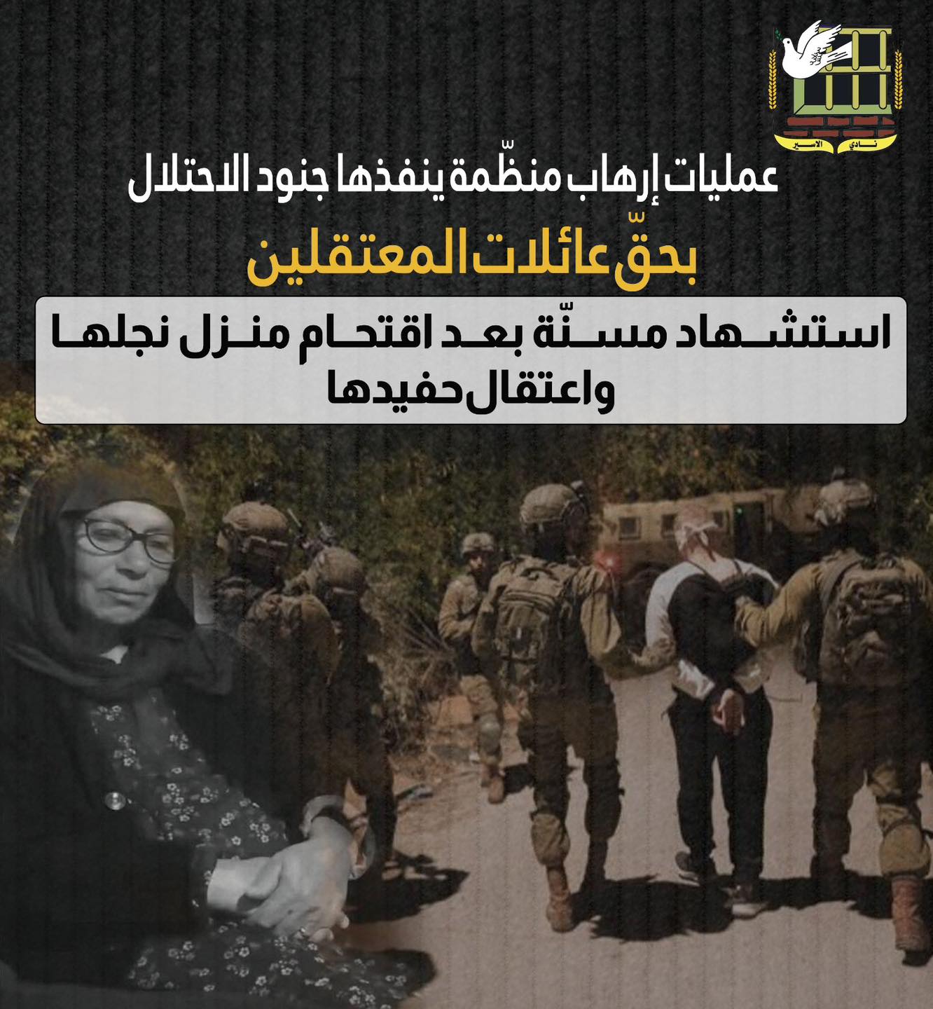 استشهاد مسنّة بعد اقتحام منزل نجلها واعتقال حفيدها