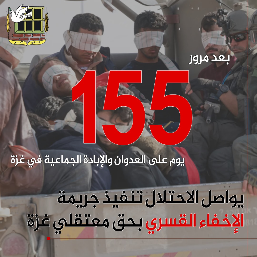 📌 155 يومًا مر على العدوان والإبادة الجماعية ومعتقلي غزة رهن الإخفاء القسري