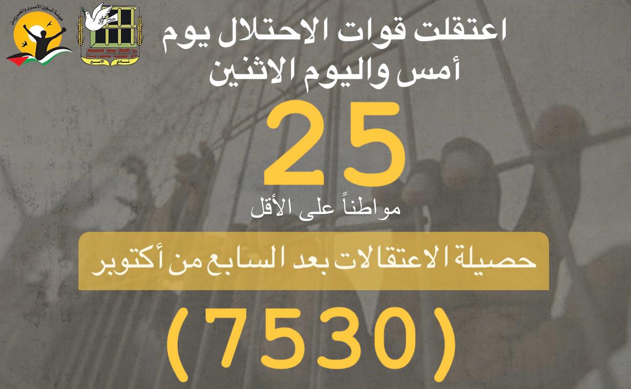 📌 ملخص حملة الاعتقالات التي نفذها الاحتلال يوم أمس واليوم