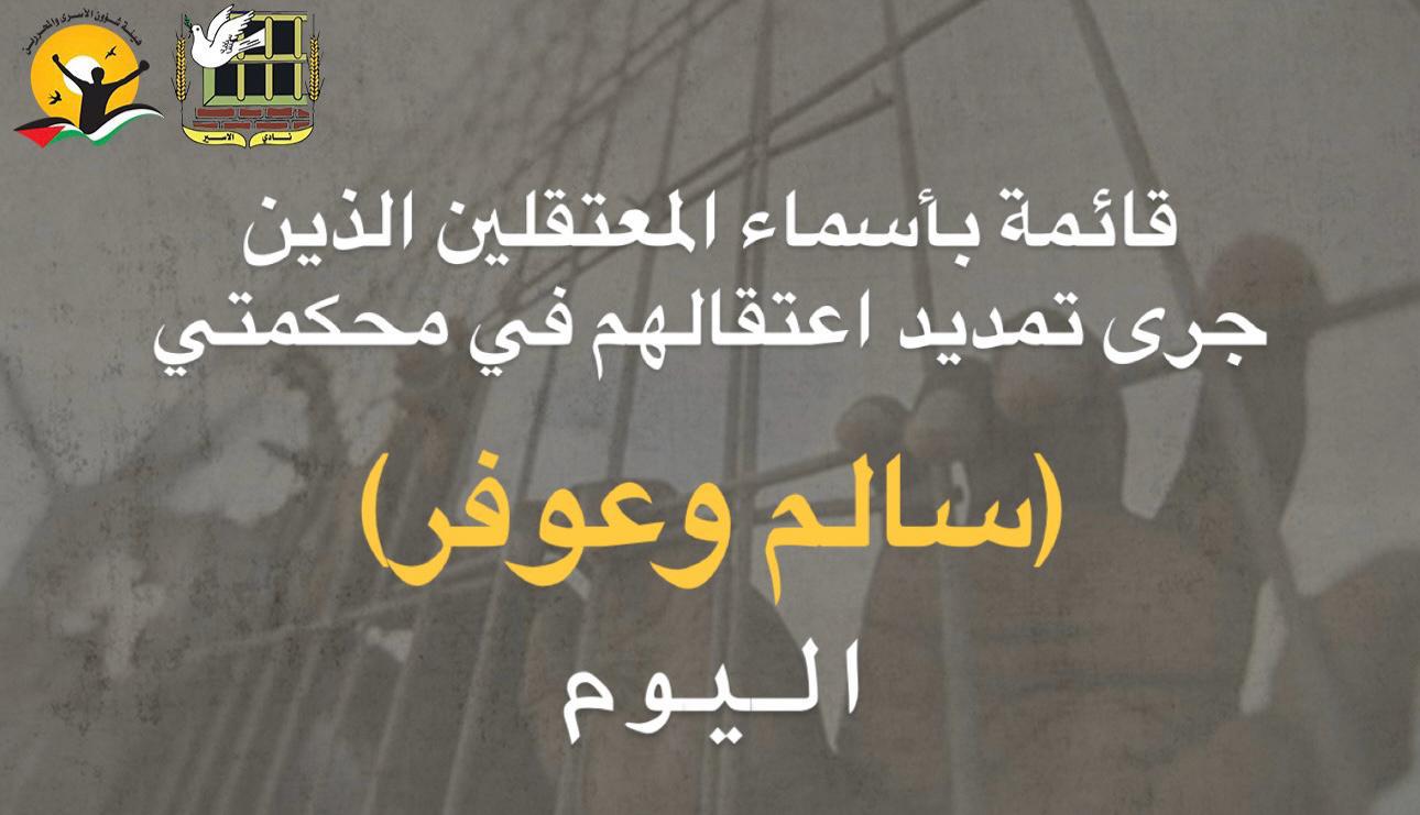 🔴 قائمة بأسماء المعتقلين الذين تم تمديد اعتقالهم في محكمتي (سالم وعوفر) اليوم
