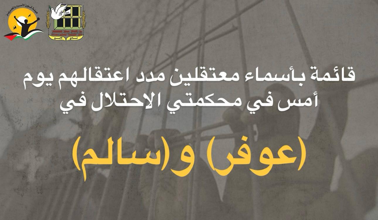 🔴 قائمة بأسماء معتقلين مدد اعتقالهم يوم أمس في محكمتي الاحتلال في (عوفر)، و(سالم) 👇