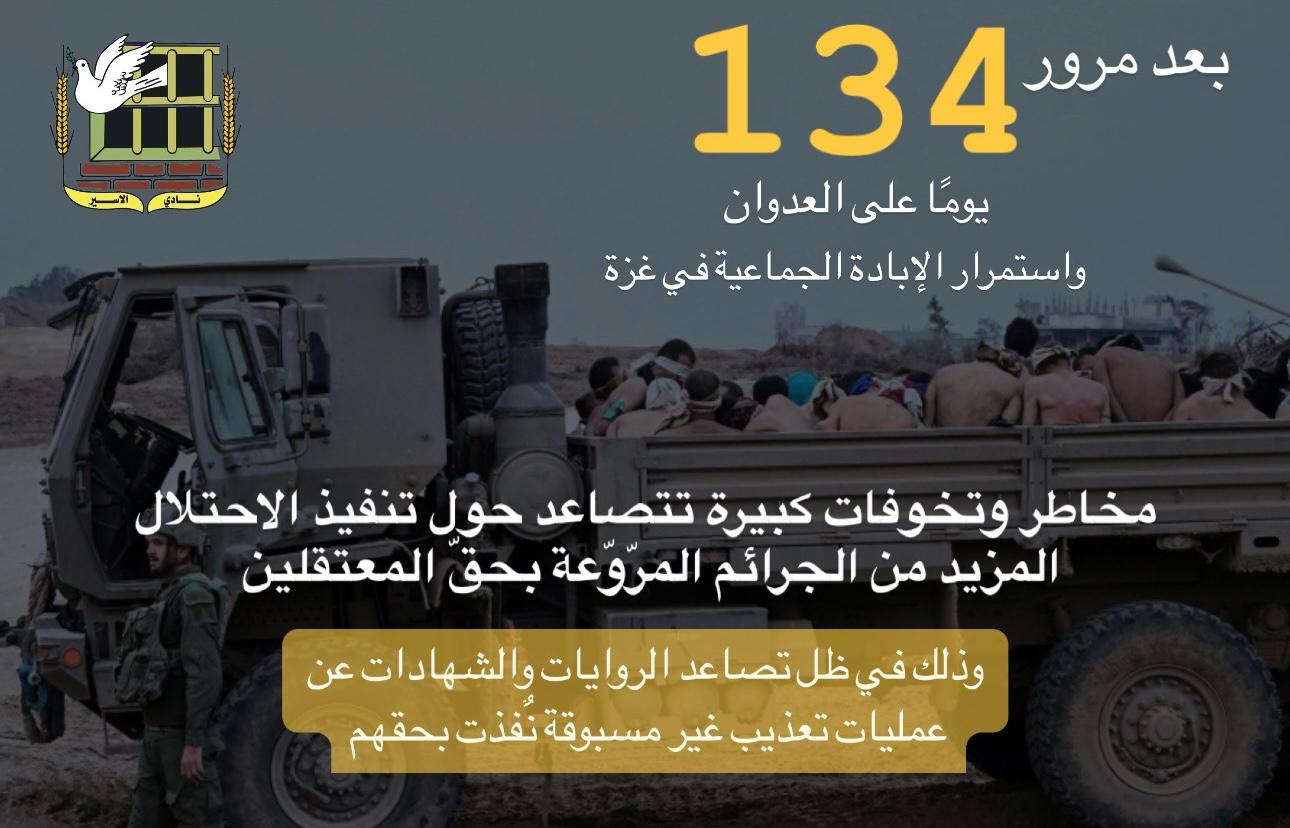 🔴 نادي الأسير: بعد مرور 134 يومًا على العدوان، واستمرار الإبادة الجماعية في غزة المزيد من التفاصيل