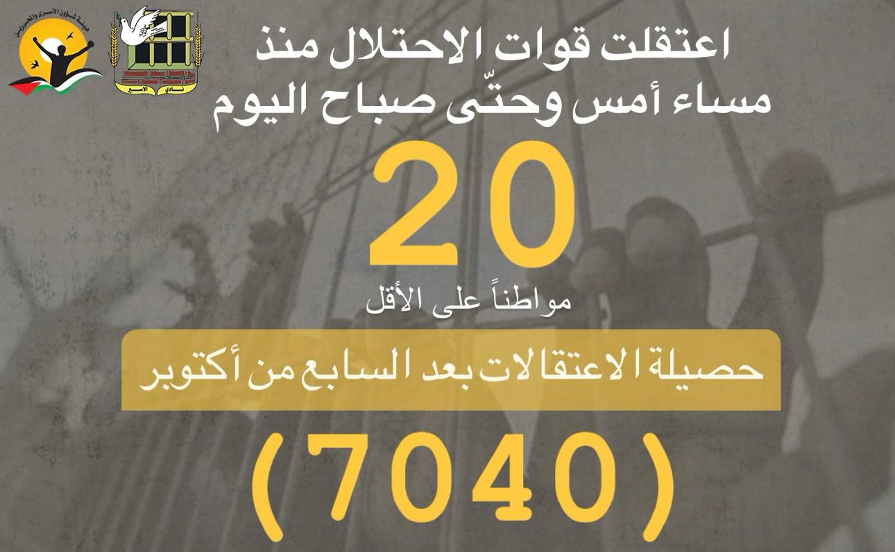 📌 ملخص حملة الاعتقالات التي نفذها الاحتلال لليوم 15/2/2024