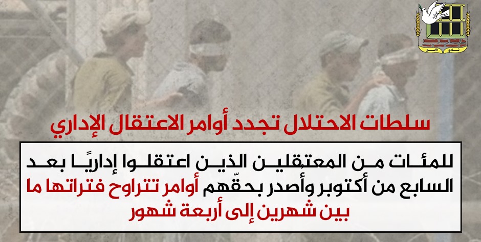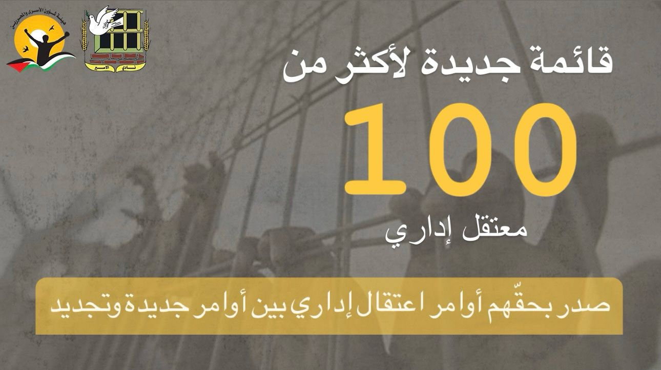 📌 قائمة جديدة لأكثر من 100 معتقل إداري صدر بحقّهم أوامر اعتقال إداري بين أوامر جديدة وتجديد