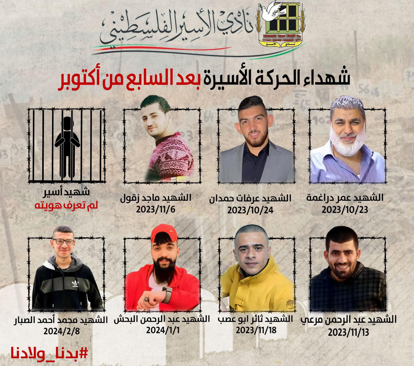 📌 باستشهاد المعتقل محمد الصبار فإنّ عدد المعتقلين الذين ارتقوا بعد السابع من أكتوبر يرتفع إلى ثمانية شهداء المزيد من التفاصيل