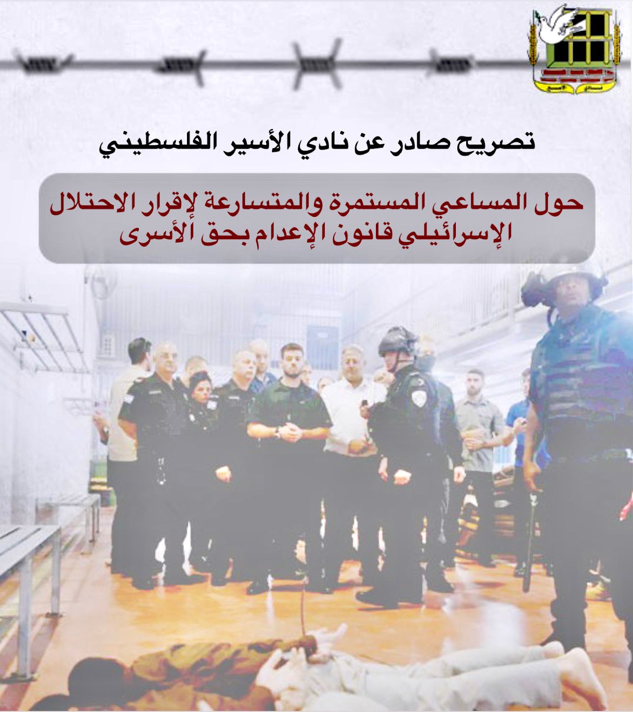 🔴 تصريح صادر عن نادي الأسير الفلسطيني حول المساعي المستمرة والمتسارعة لإقرار الاحتلال الإسرائيلي قانون الإعدام بحق الأسرى