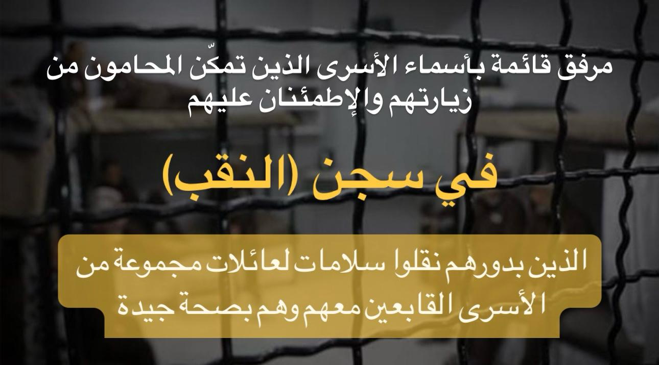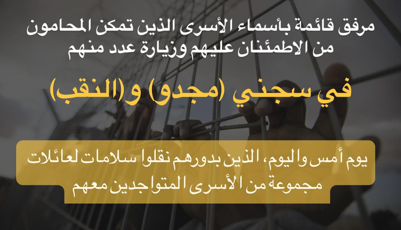 📌 إحاطة شاملة عن آخر المستجدات حول الظروف الاعتقالية في سجني (مجدو) و(النقب)