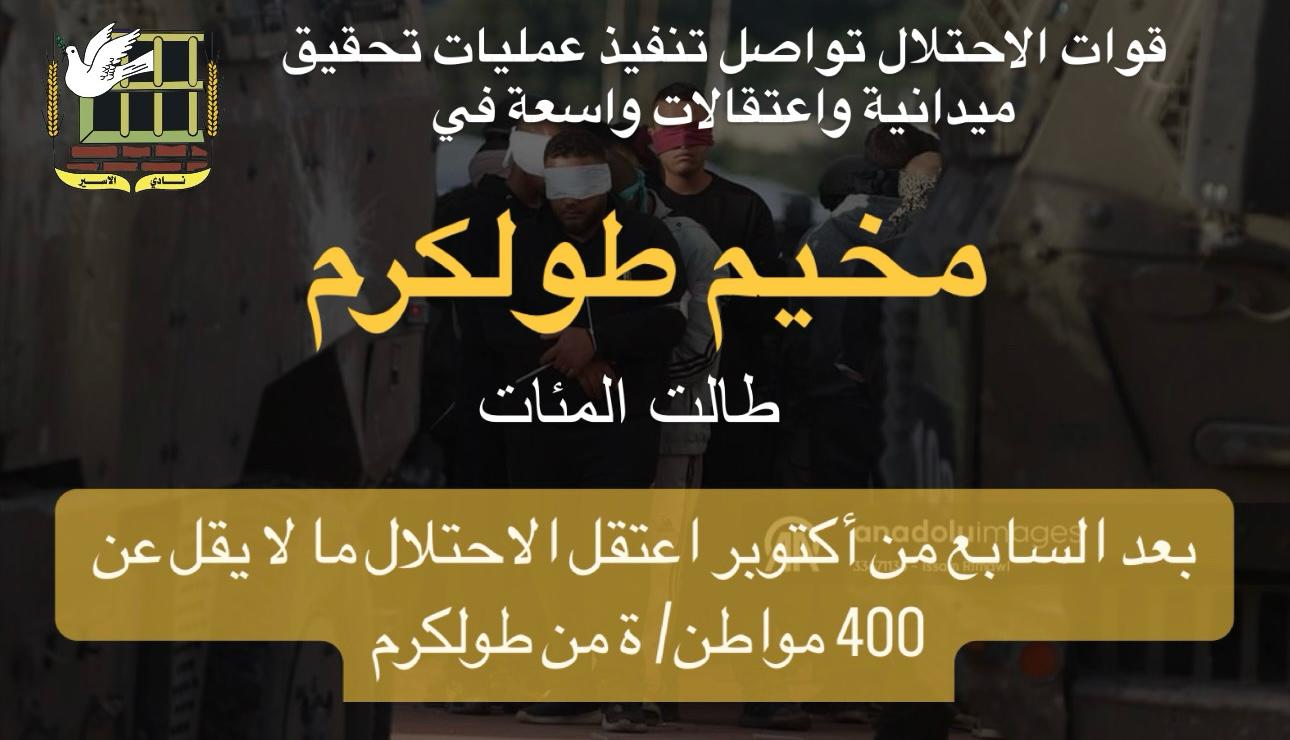 نادي الأسير: قوات الاحتلال تواصل تنفيذ عمليات تحقيق ميدانية واعتقالات واسعة في مخيم طولكرم طالت المئات
