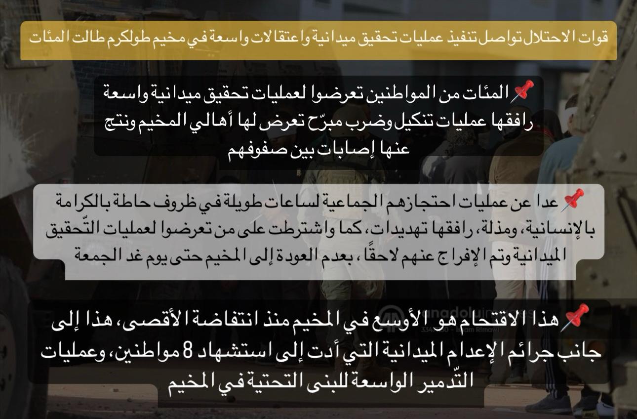 في إطار العدوان المستمر على محافظة طولكرم ومخيماتها