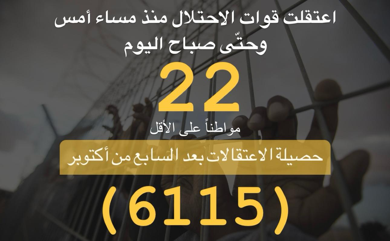 ملخص حملة الاعتقالات التي نفذها الاحتلال لليوم 20/1/2024