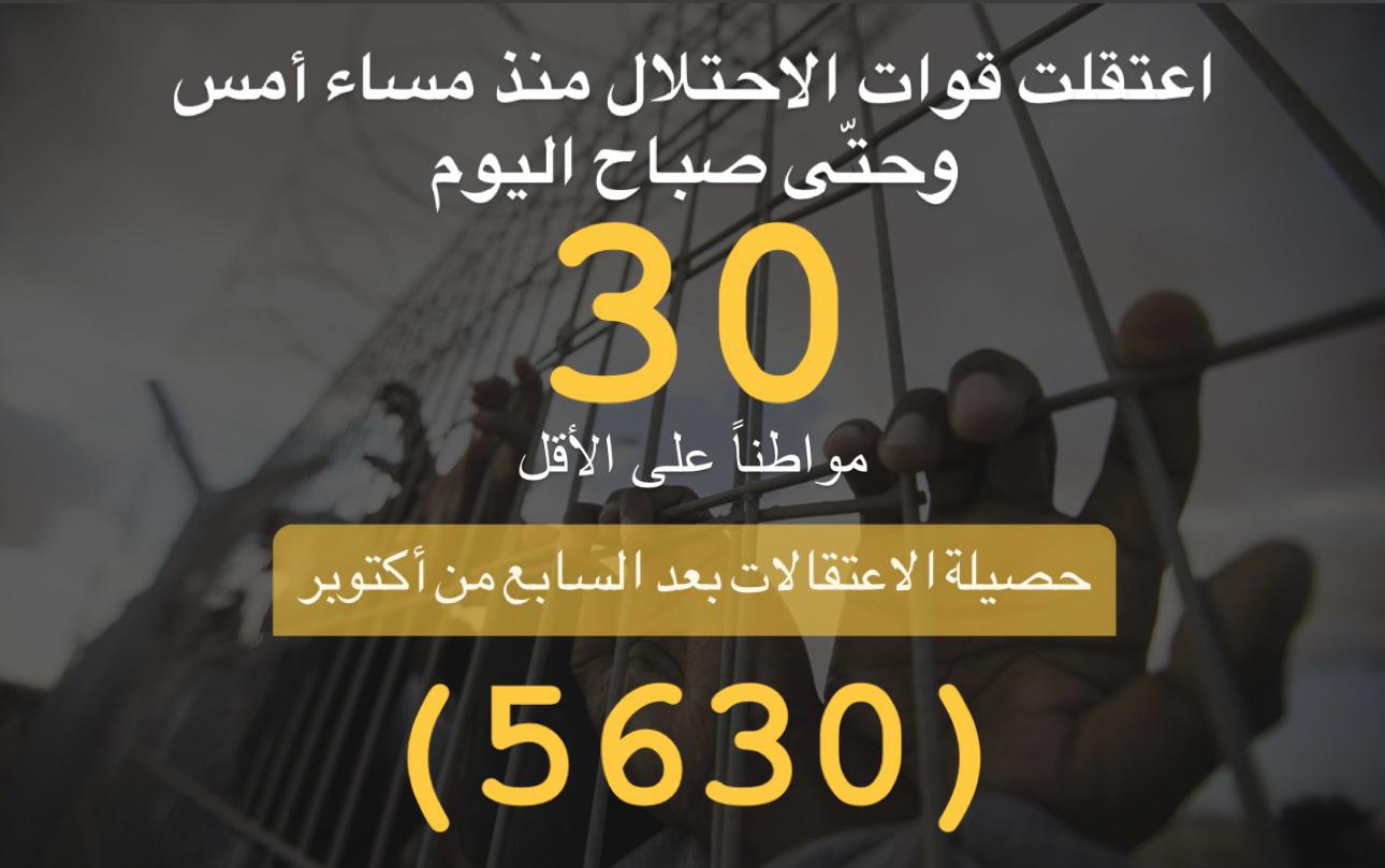 ملخص حملة الاعتقالات التي نفذها الاحتلال لليوم 5/1/2024