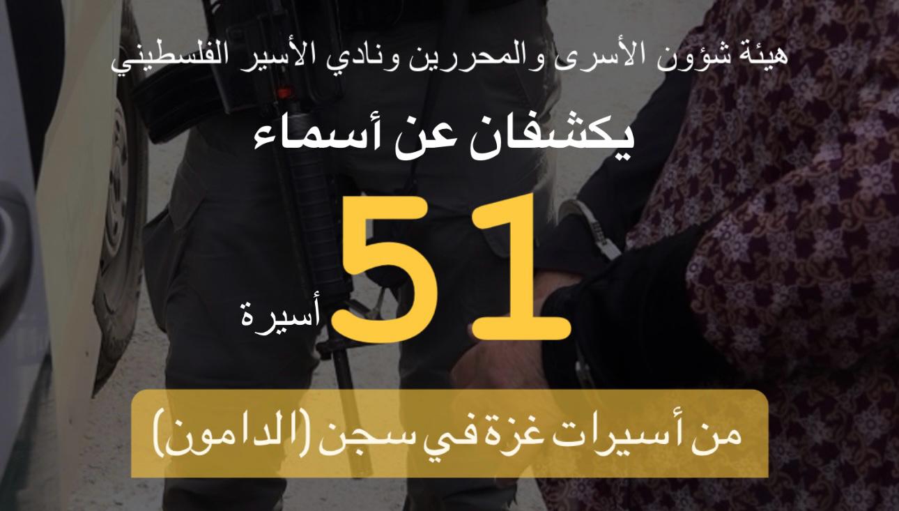 هيئة شؤون الأسرى والمحررين ونادي الأسير الفلسطيني تكشفان عن أسماء (51) أسيرة من أسيرات غزة في سجن (الدامون)