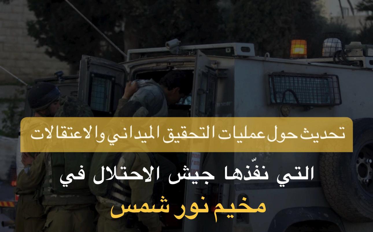 تحديث حول عمليات التّحقيق الميداني والاعتقالات التي نفّذها جيش الاحتلال في مخيم نور شمس