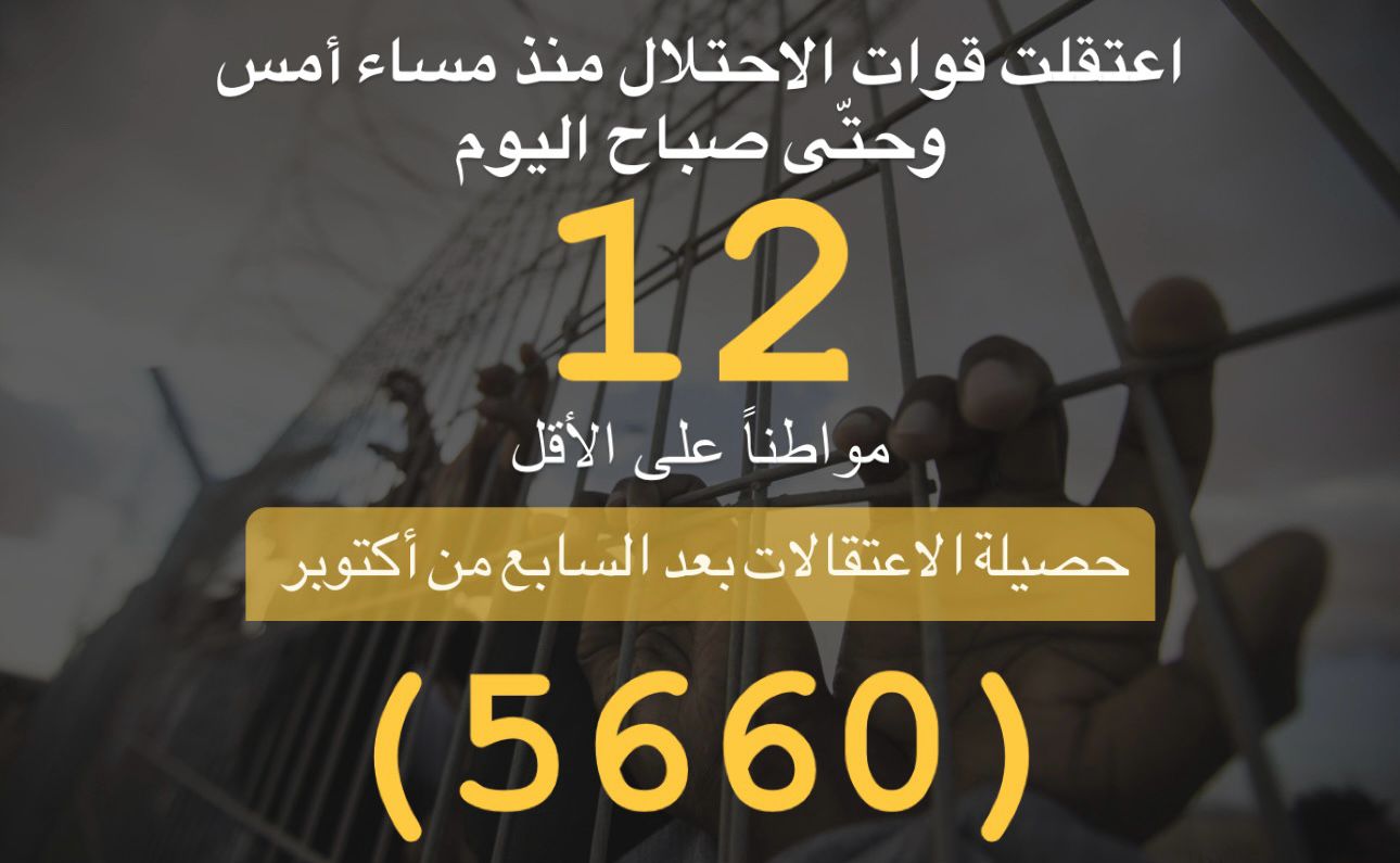 ملخص حملة الاعتقالات التي نفذها الاحتلال لليوم 6/1/2024