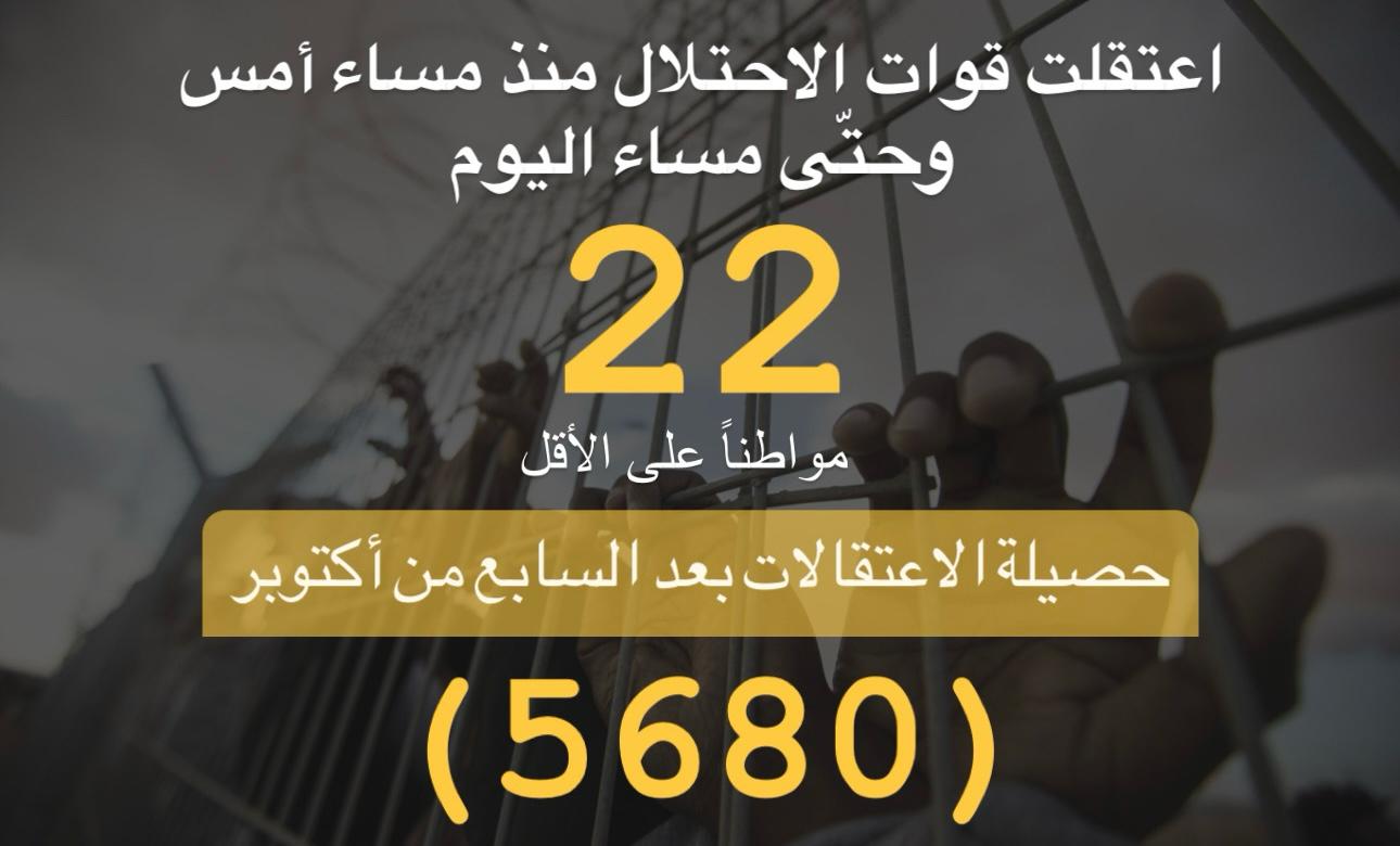 ملخص حملة الاعتقالات التي نفذها الاحتلال لليوم 7/1/2024