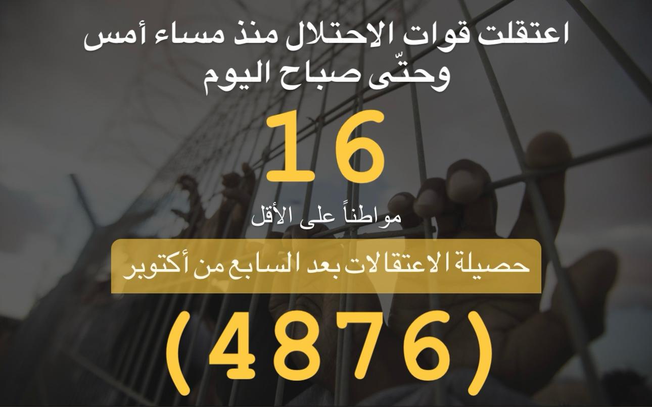 ملخص حملة الاعتقالات التي نفذها الاحتلال لليوم 1/1/2024