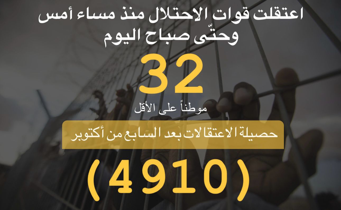 ملخص حملة الاعتقالات التي نفذها الاحتلال لليوم 31/12/2023