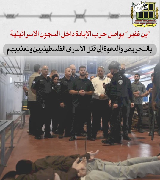 🔴 "بن غفير" يواصل حرب الإبادة داخل السجون الإسرائيلية ويدعو إلى قتل الأسرى الفلسطينيين وتعذيبهم