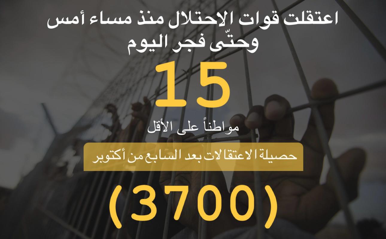 ملخص حملة الاعتقالات التي نفذها الاحتلال لليوم 10/12/2023