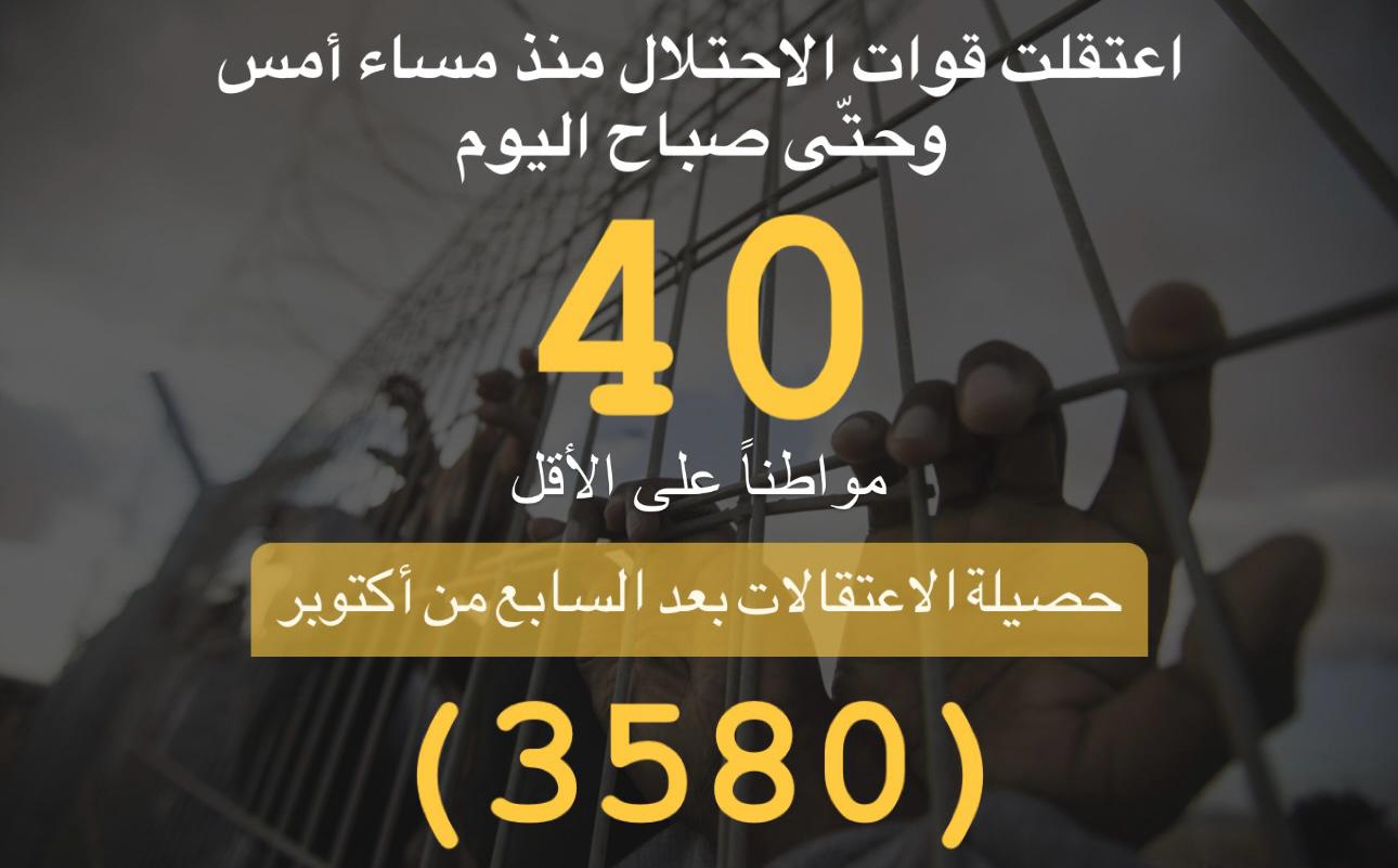 Basic information on detention campaigns carried out in the West Bank after October 7 until today, November 3, 2023