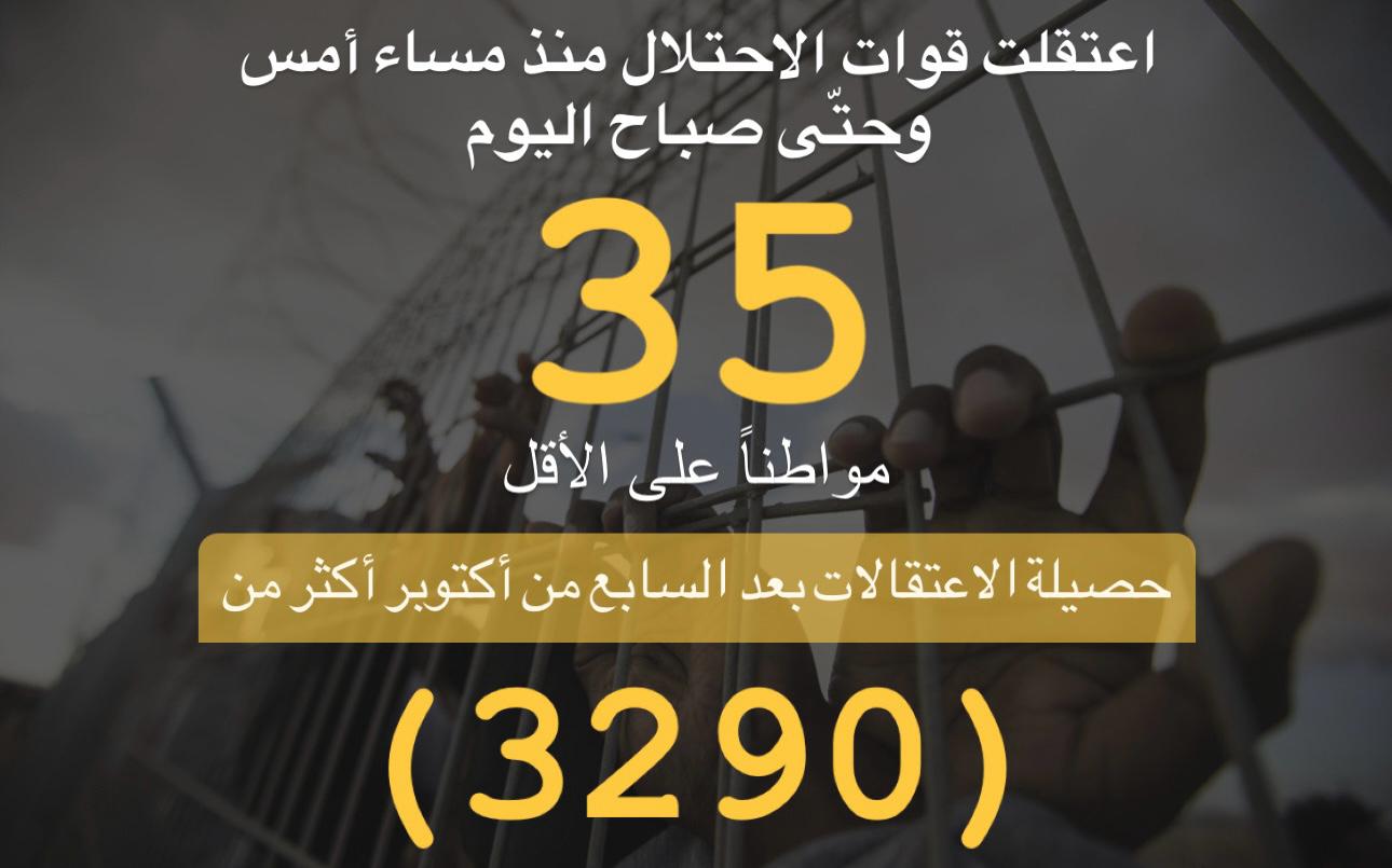 •بلغت حصيلة حملات الاعتقال أكثر من (3290) أعلاها في محافظة الخليل.