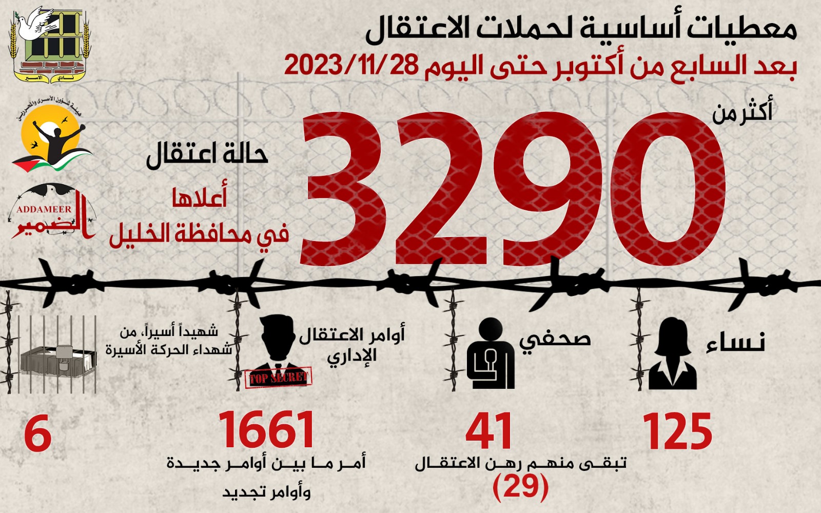 معطيات أساسية لحملات الاعتقال بعد السابع من أكتوبر حتى تاريخ اليوم 28/11/2023