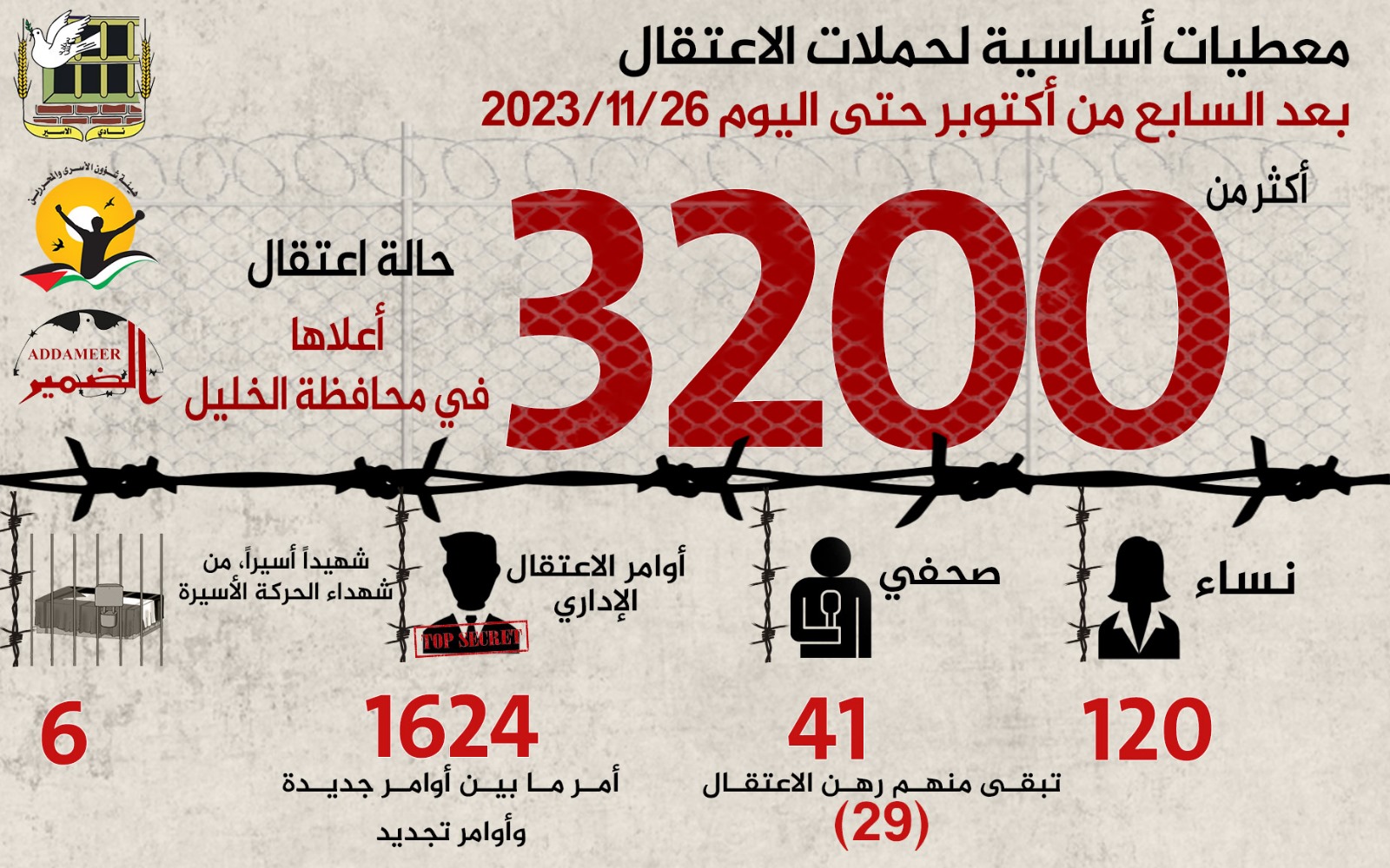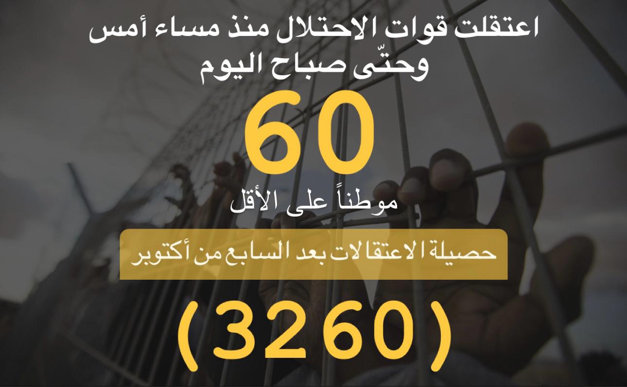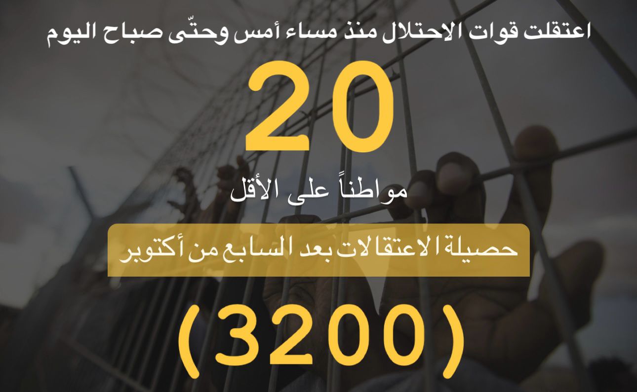 معطيات أساسية لحملات الاعتقال بعد السابع من أكتوبر حتى تاريخ اليوم 26/11/2023