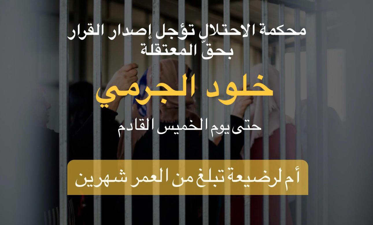 محكمة الاحتلال تؤجل إصدار القرار بحقّ المعتقلة خلود الجرمي حتى يوم الخميس القادم