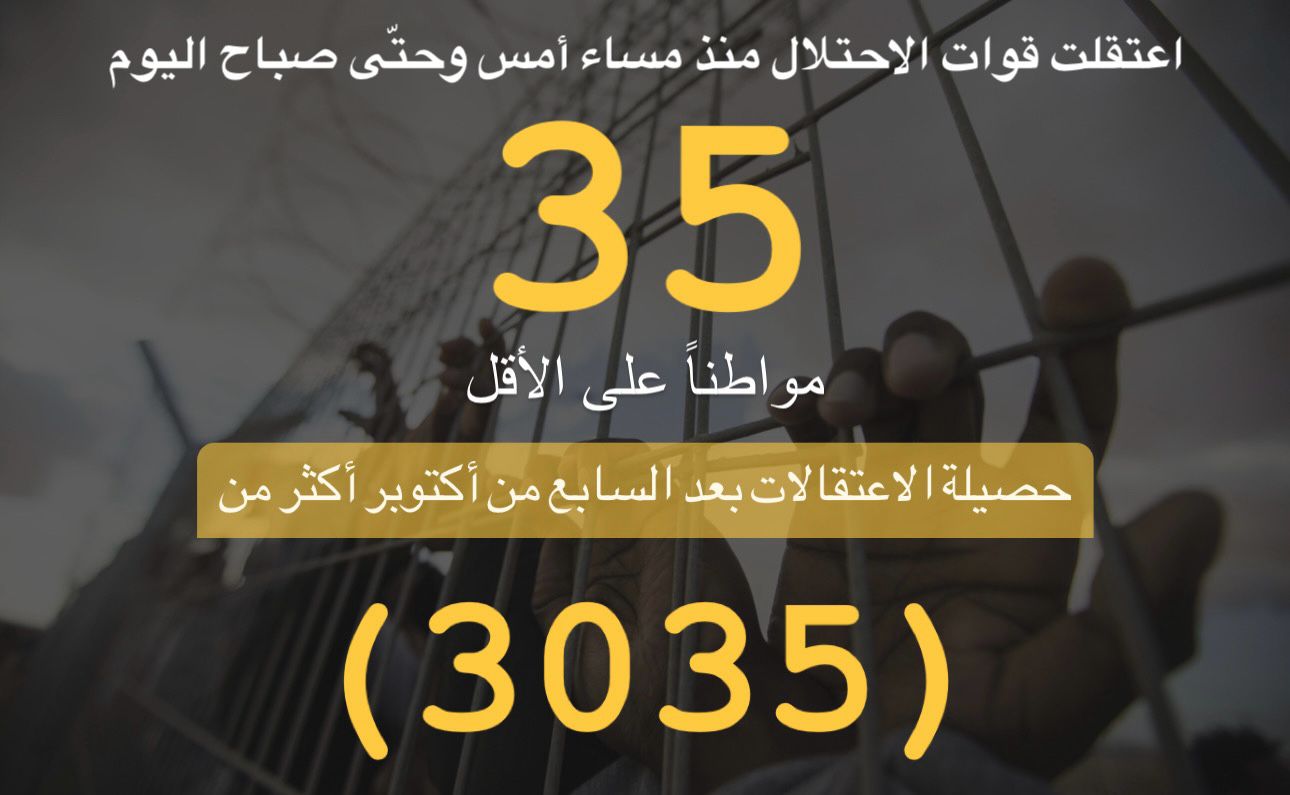 ملخص حملة الاعتقالات التي نفذها الاحتلال لليوم 25/11/2023
