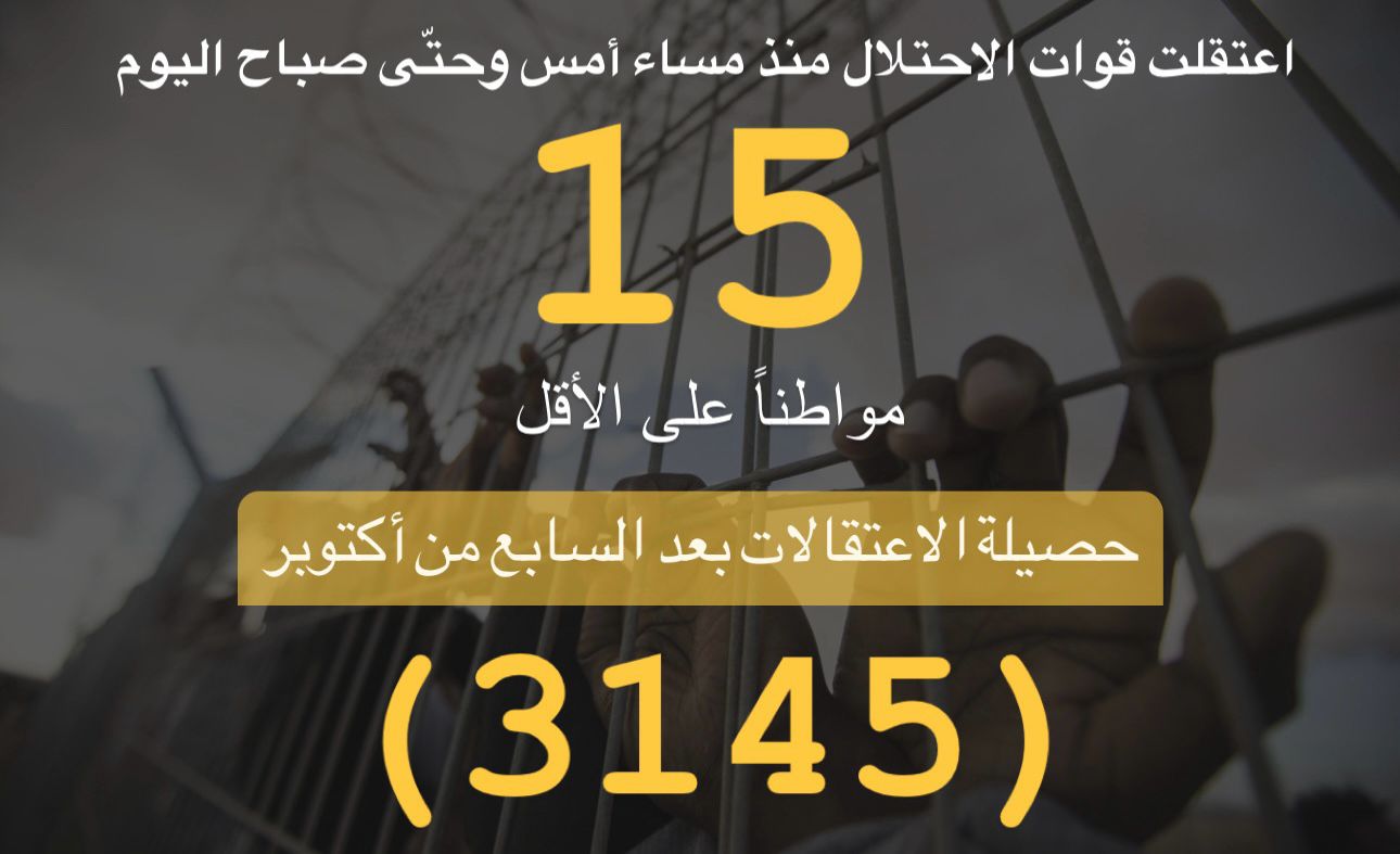ملخص حملة الاعتقالات التي نفذها الاحتلال لليوم 24/11/2023