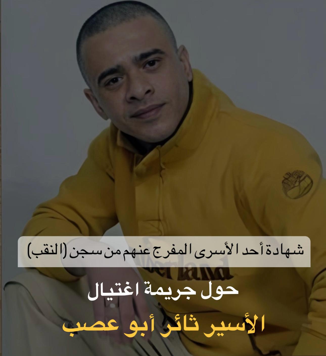 وفقًا لشهادة أحد الأسرى المفرج عنهم من سجن (النقب) حول جريمة اغتيال الأسير ثائر أبو عصب