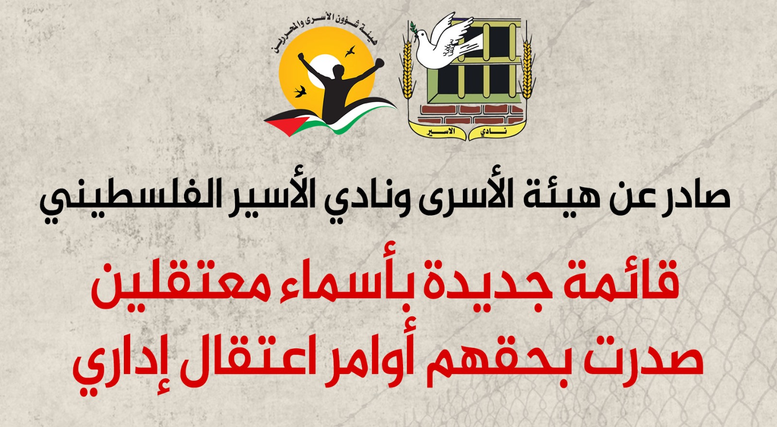 📌 قائمة جديدة بأسماء معتقلين صدرت بحقهم أوامر اعتقال إداري بين أوامر (جديد وتجديد)