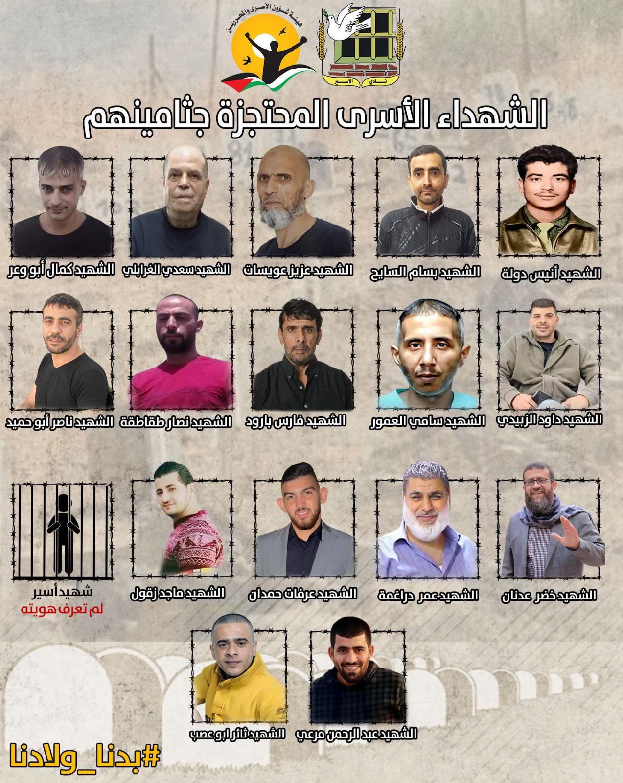 (17) شھیداً من شھداء الحركة الأسيرة يواصل الاحتلال الإسرائيلي احتجاز جثامینھم، منهم ستة شهداء بعد السابع من أكتوبر