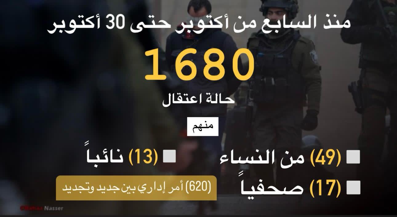 منذ السابع من أكتوبر، سُجلت أكثر من (1740) حالة اعتقال