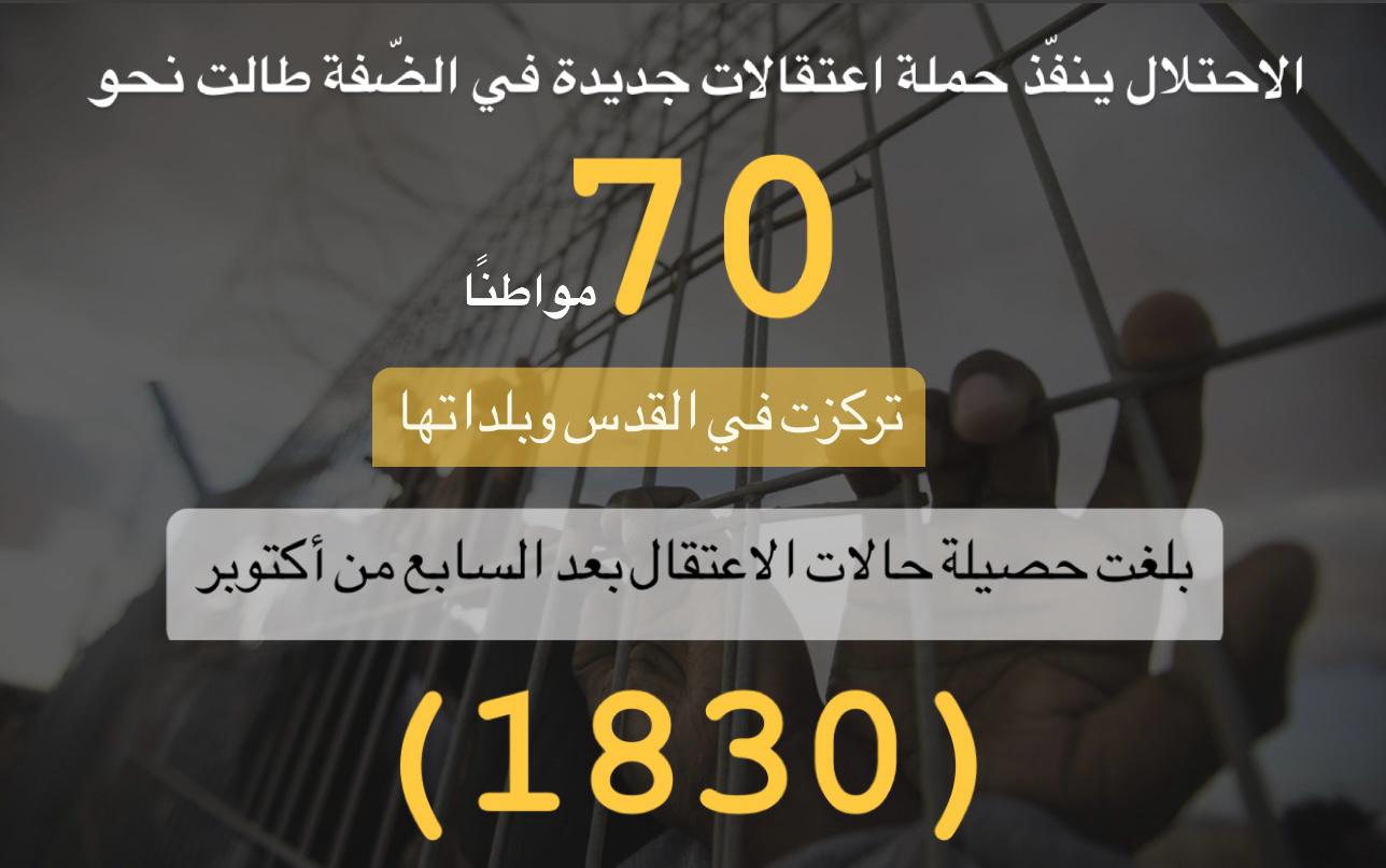 الاحتلال ينفّذ حملة اعتقالات جديدة في الضّفة طالت نحو (70) مواطنًا