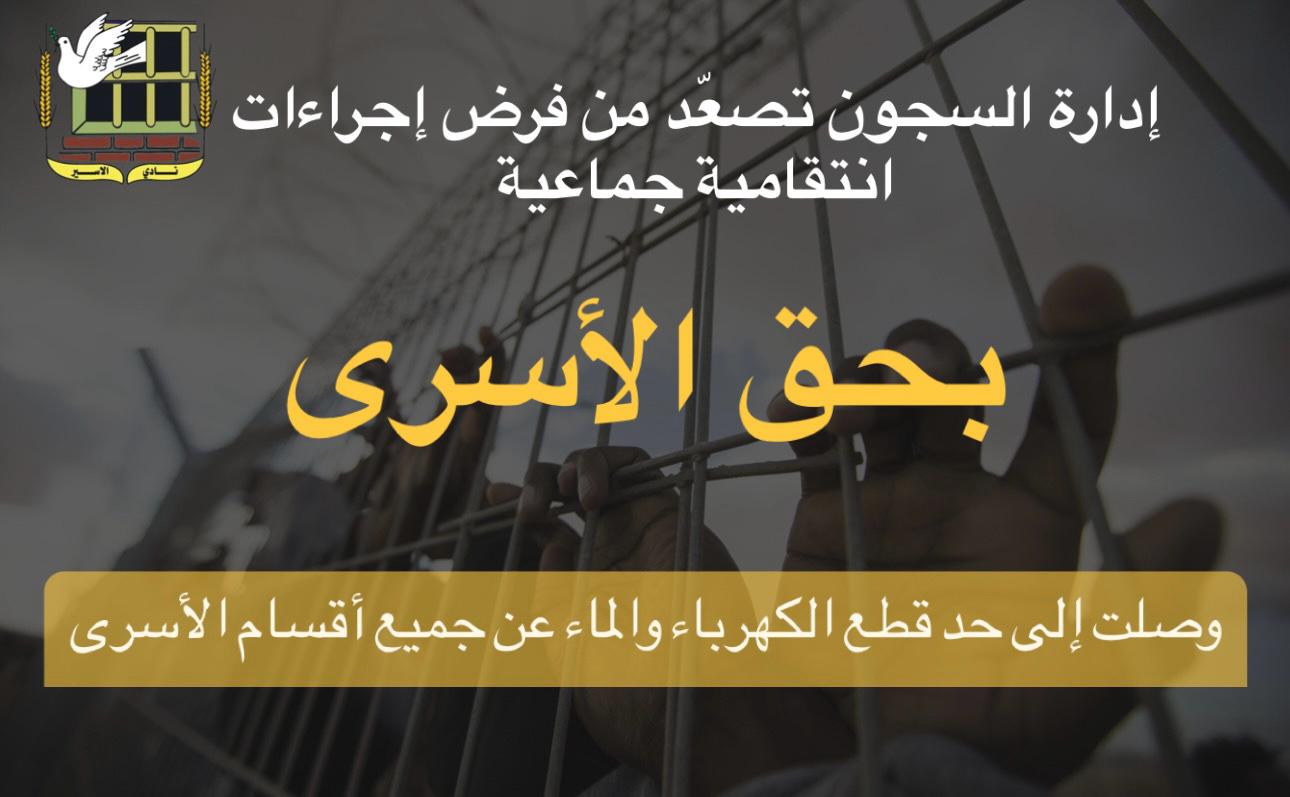 نادي الأسير: إدارة السجون تصعّد من فرض إجراءات انتقامية جماعية بحق الأسرى، وصلت إلى حد قطع الكهرباء والماء عن جميع أقسام الأسرى