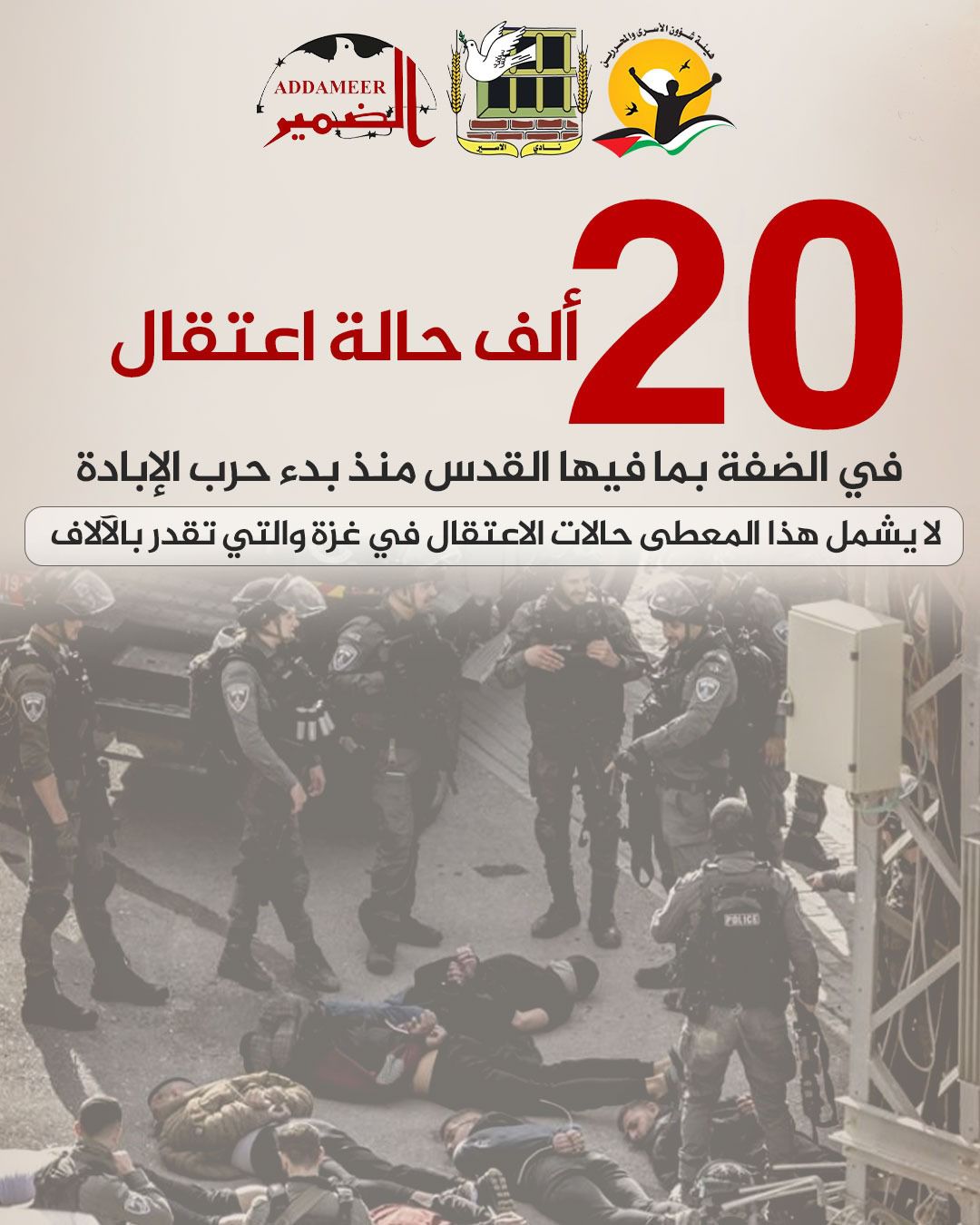 🔴 نحو 20 ألف حالة اعتقال في الضفة بما فيها القدس منذ بدء حرب الإبادة