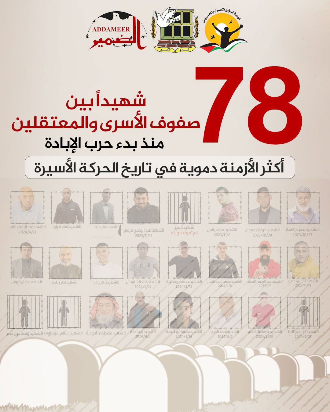🔴 78 شهيداً بين صفوف الأسرى والمعتقلين منذ بدء حرب الإبادة