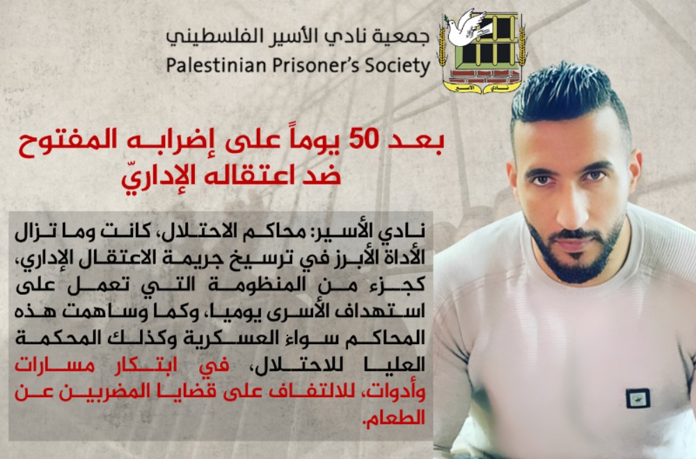 الاحتلال يواصل تعنته ورفضه الاستجابة لمطلب المعتقل الإداريّ كايد الفسفوس الذي يواصل إضرابه منذ (52) يومًا